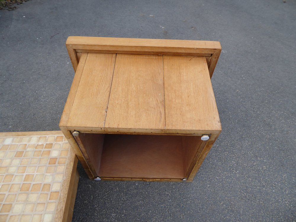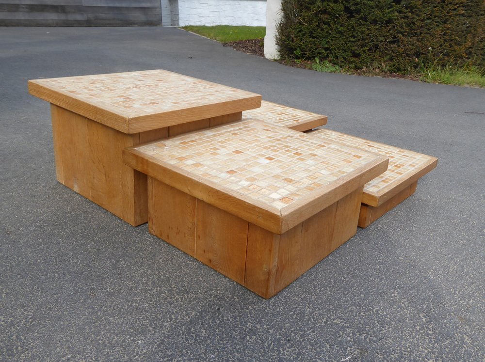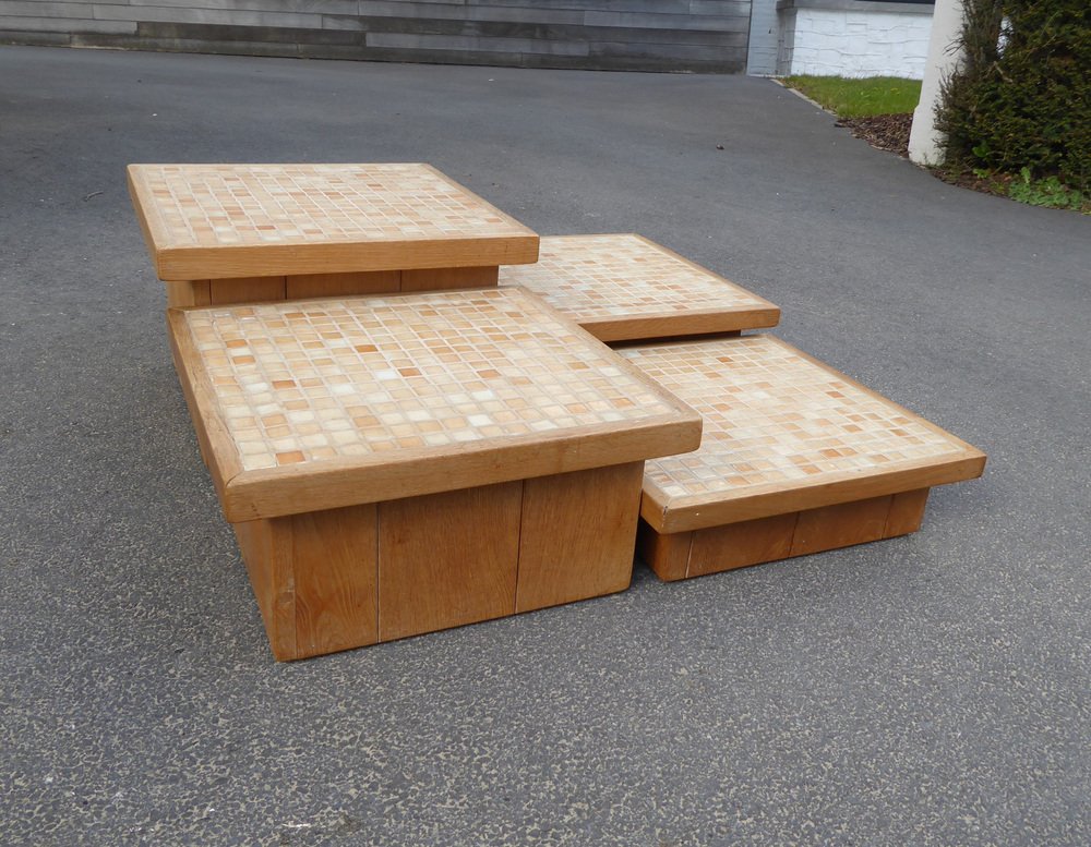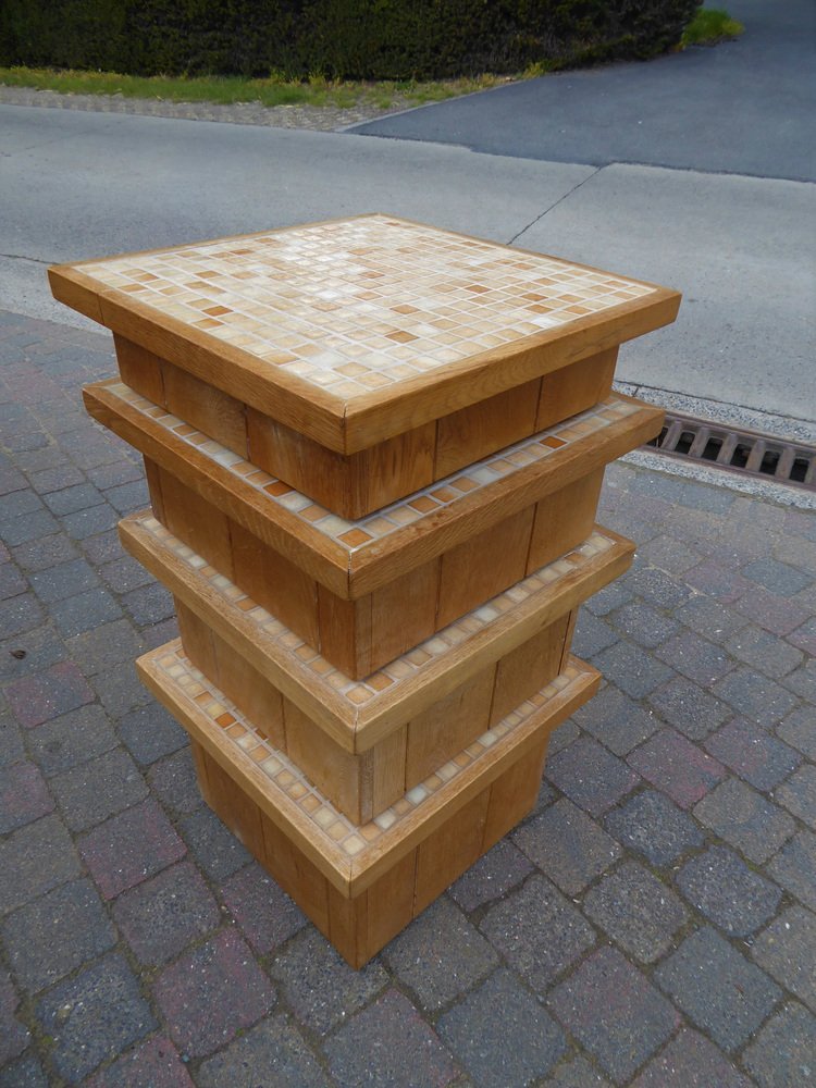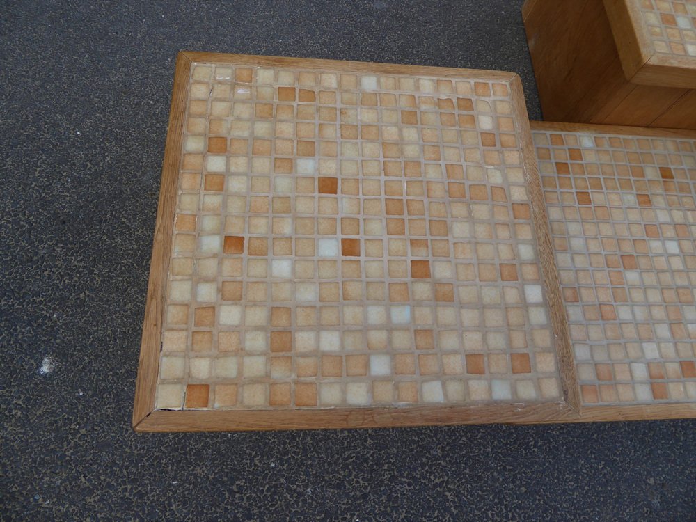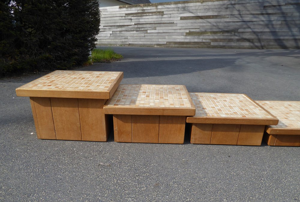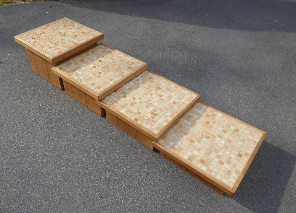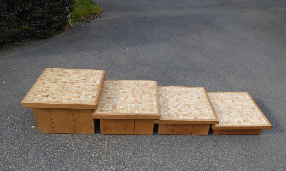 Modular Pink Mosaic and Inlaid Oak Coffee Table, 1960s, Set of 4