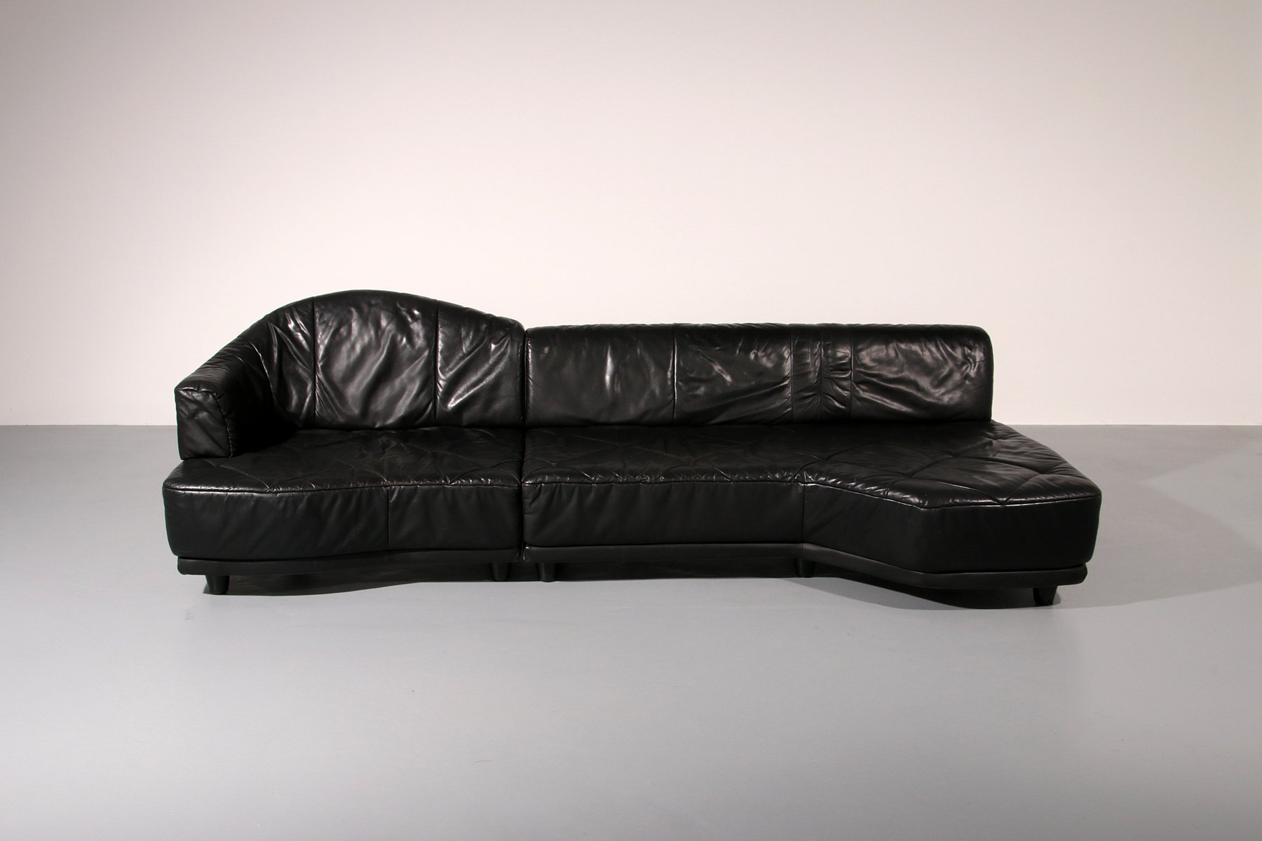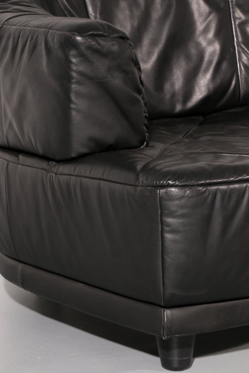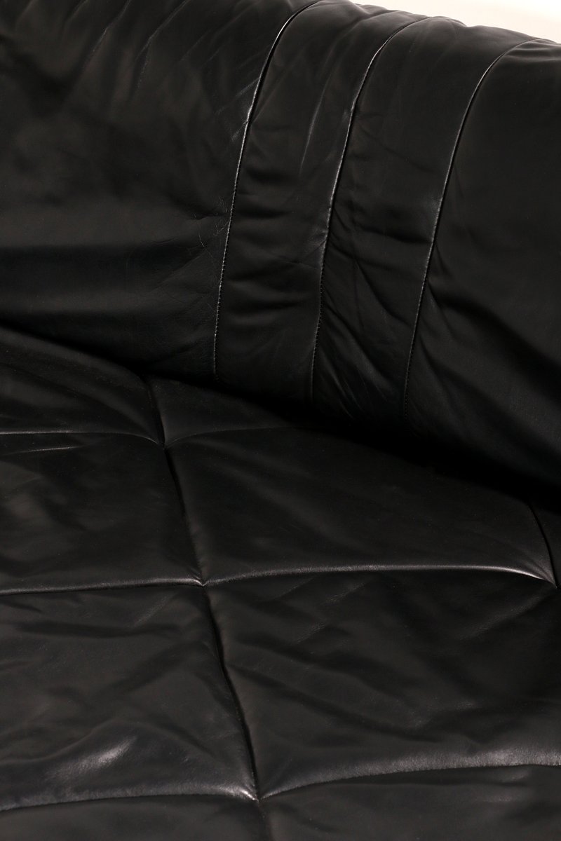 Modular Sofa in Black Leather, 1980, Set of 4