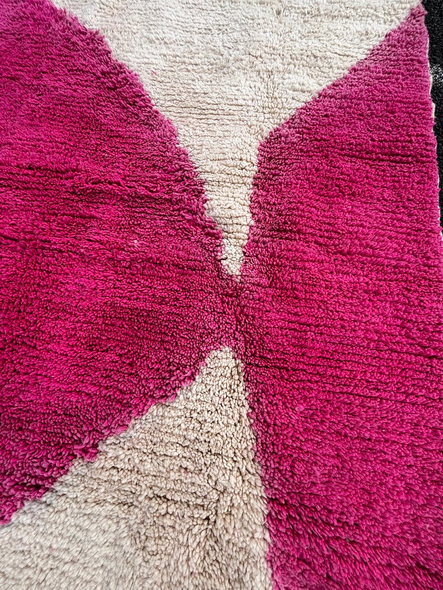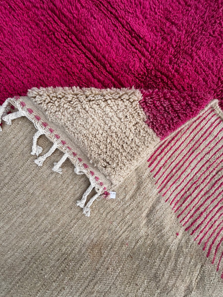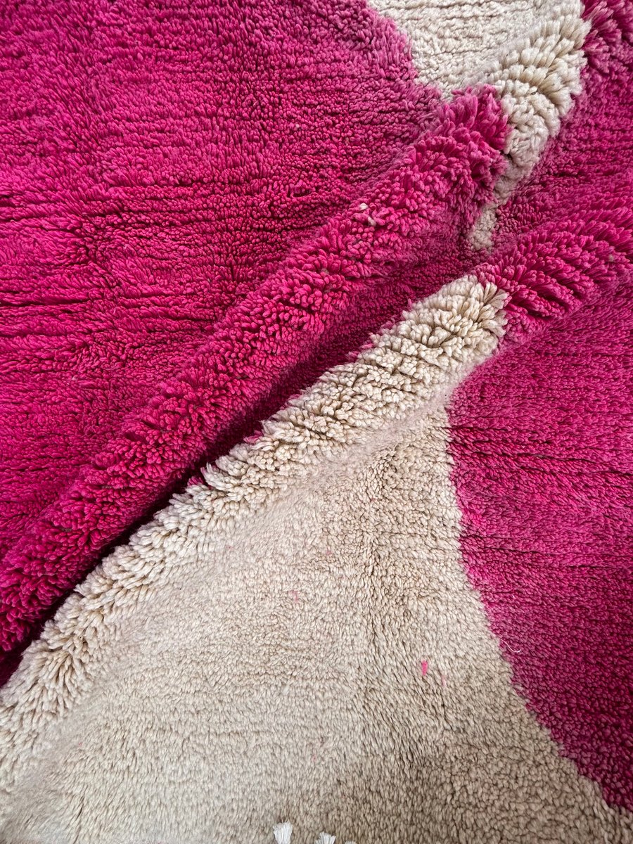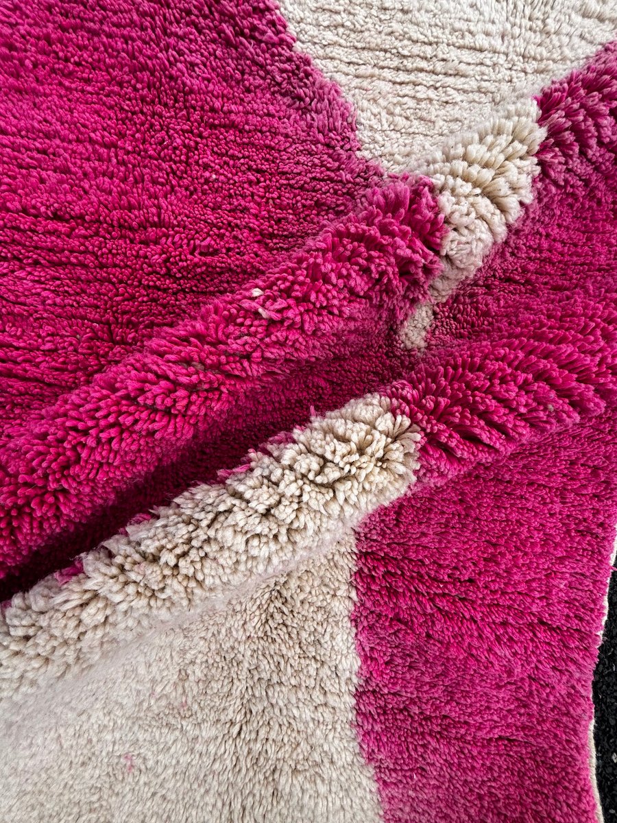 Moroccan Beni Ouarain Rug with Abstract Pink Decor, 1990