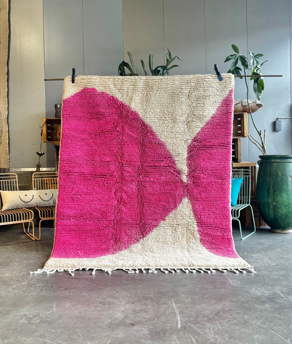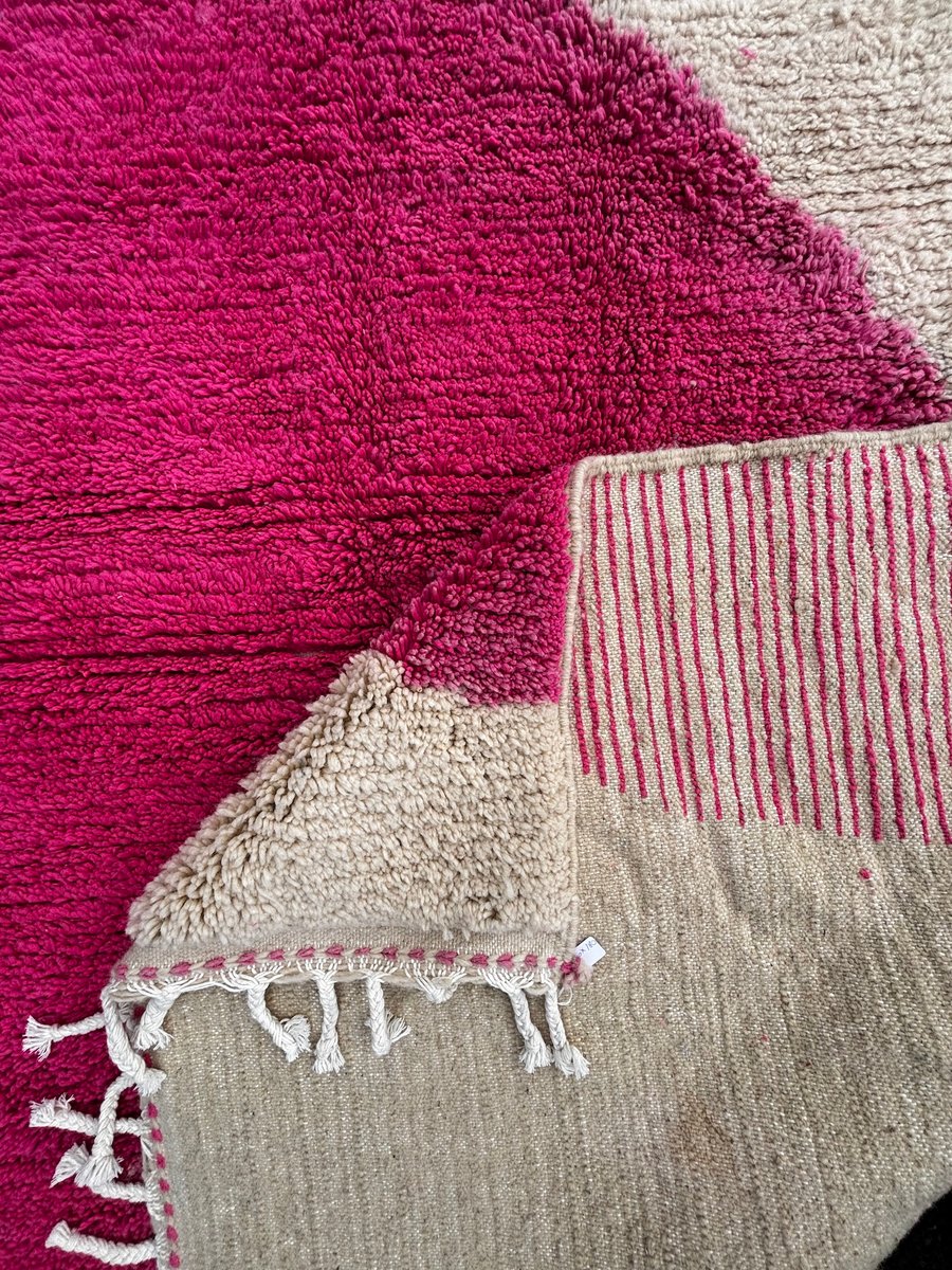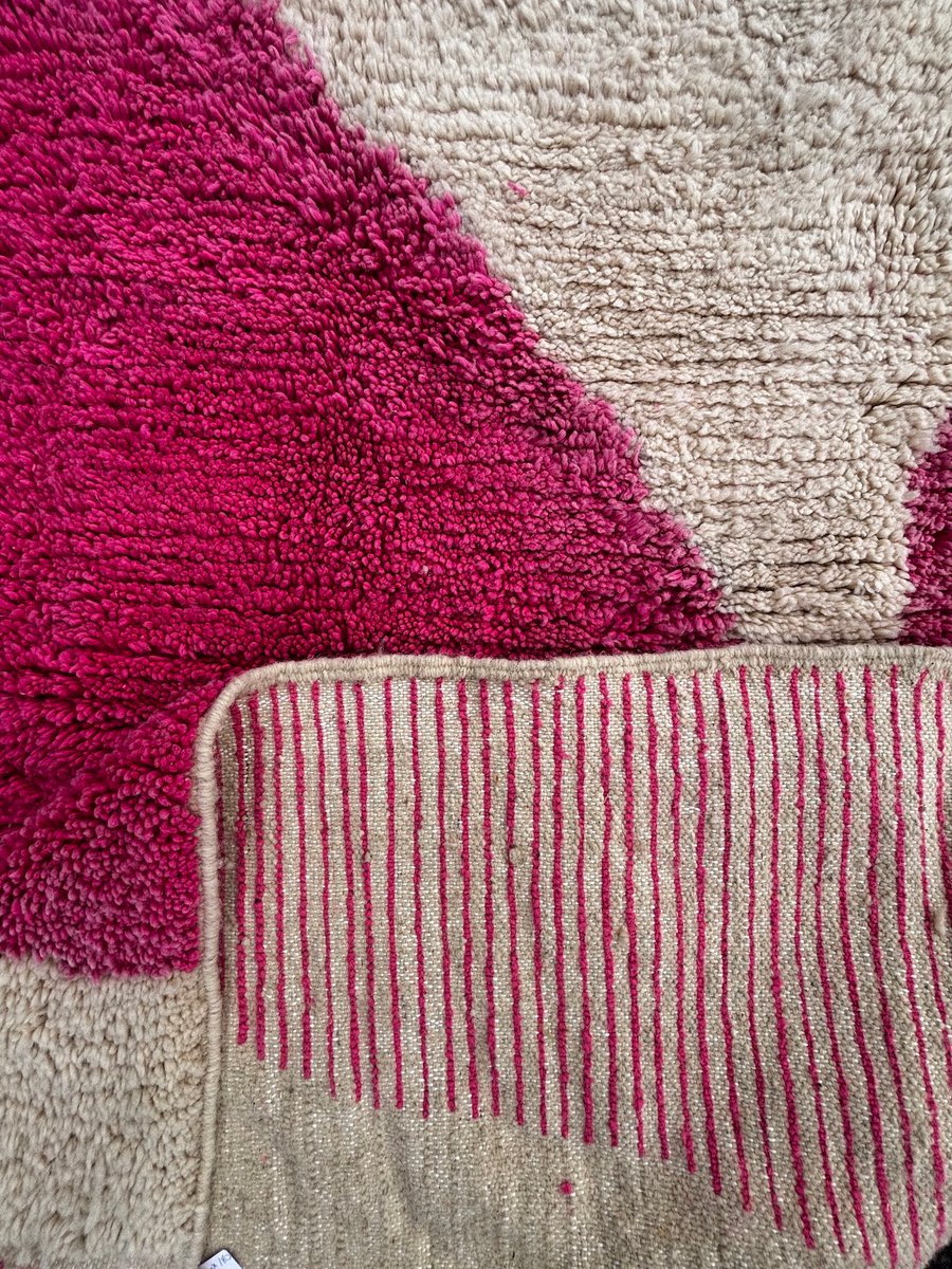 Moroccan Beni Ouarain Rug with Abstract Pink Decor, 1990