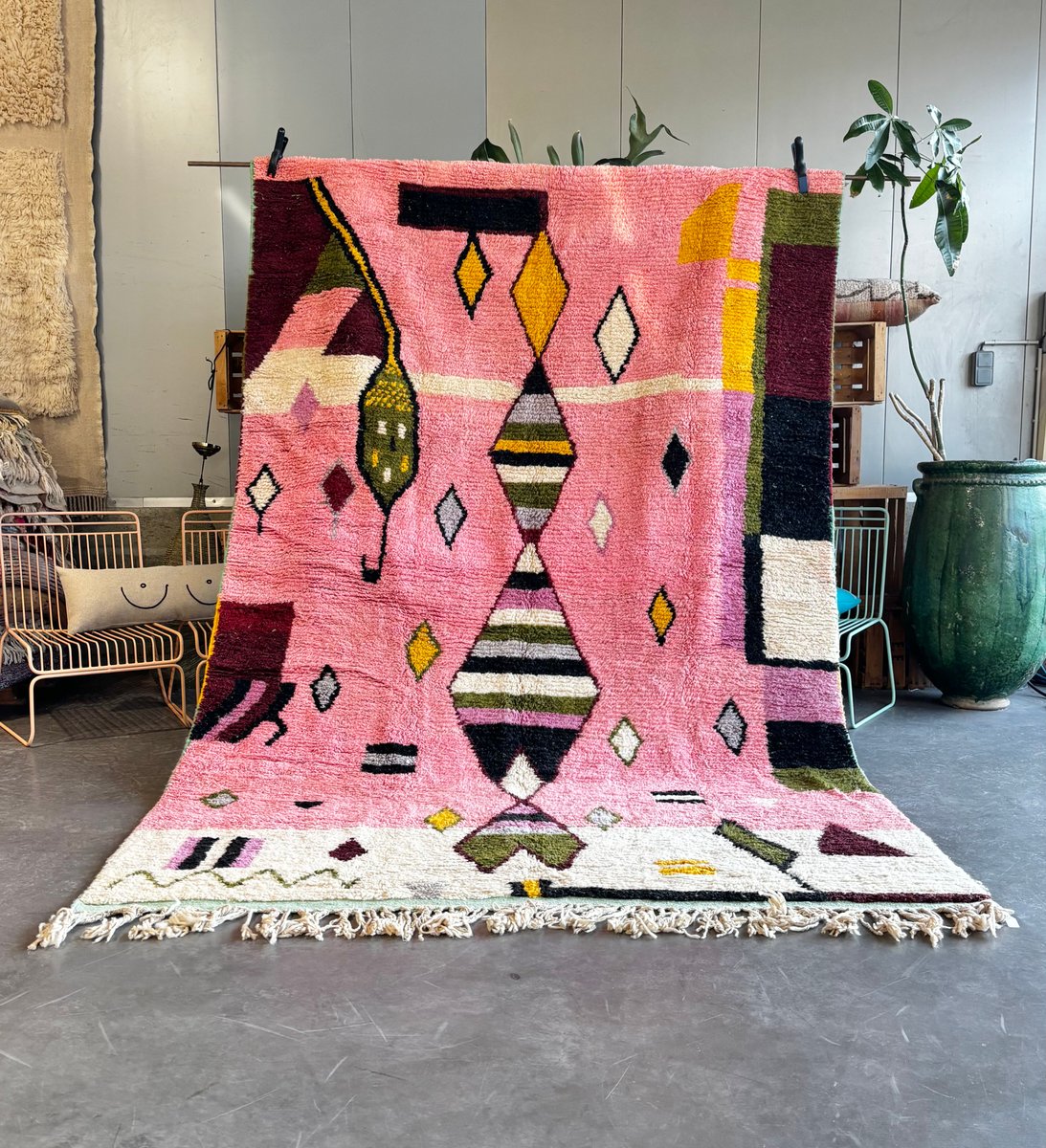 Moroccan Boujad Wool Rug with Abstract Composition, 1990