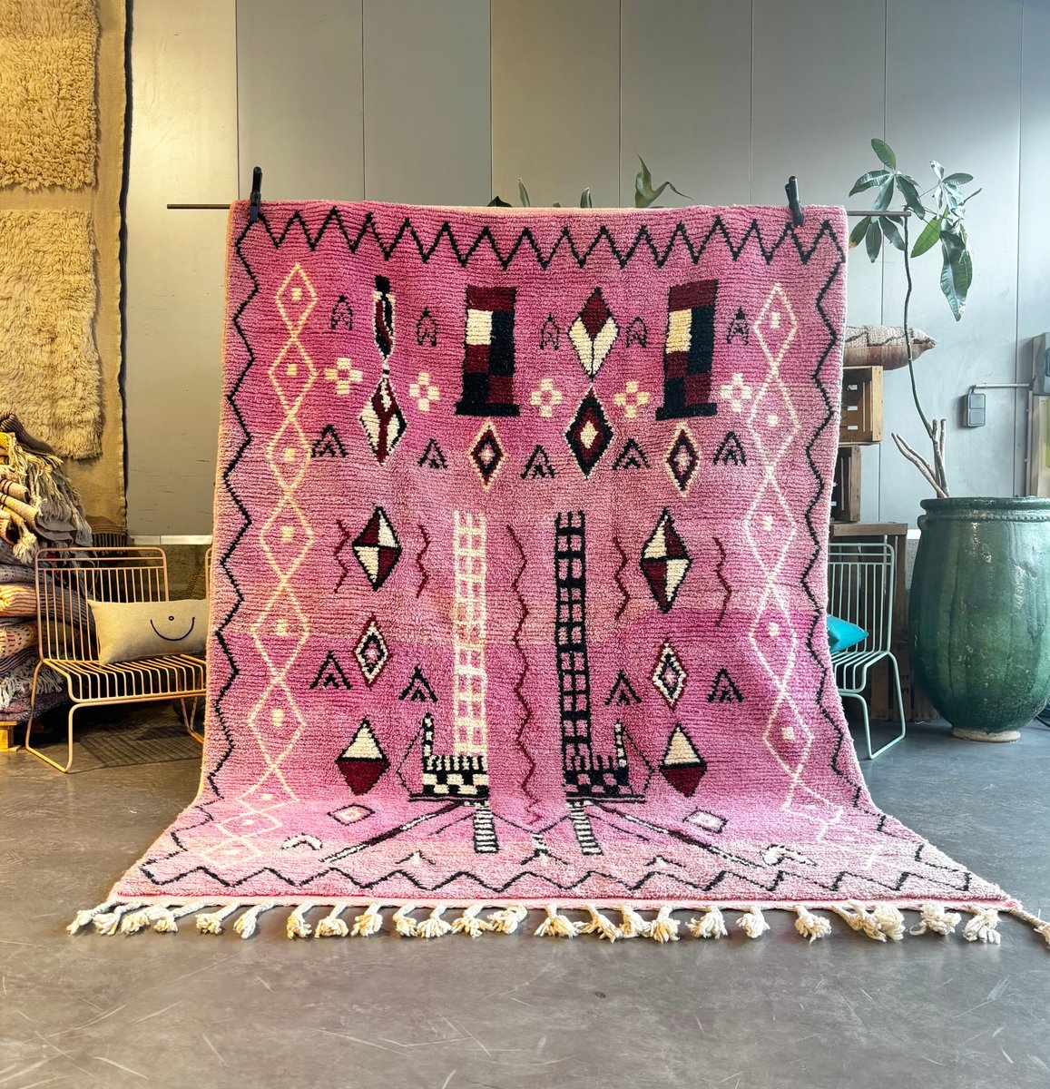 Moroccan Boujad Wool Rug with Modern Motifs, 1990