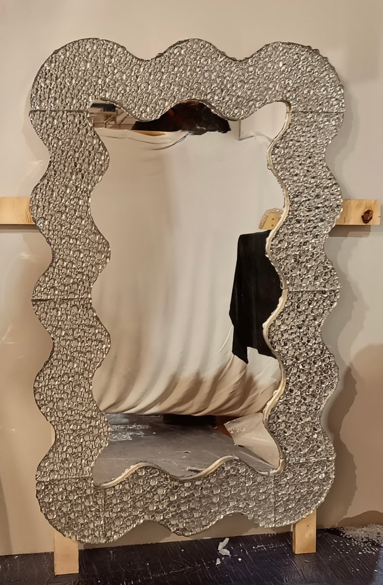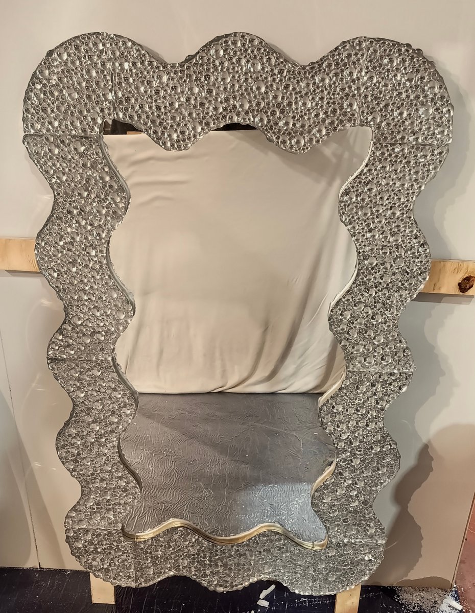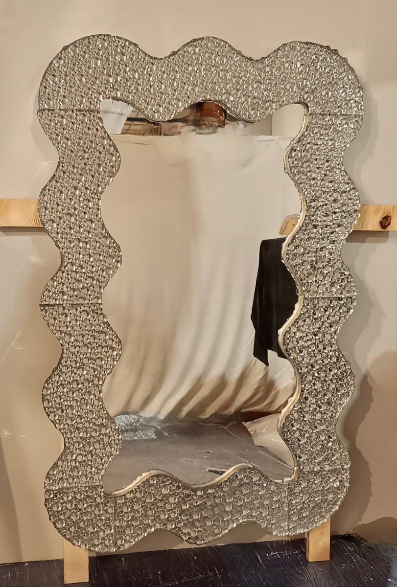 Murano Art Glass and Brass Console Wall Mirror, 2000
