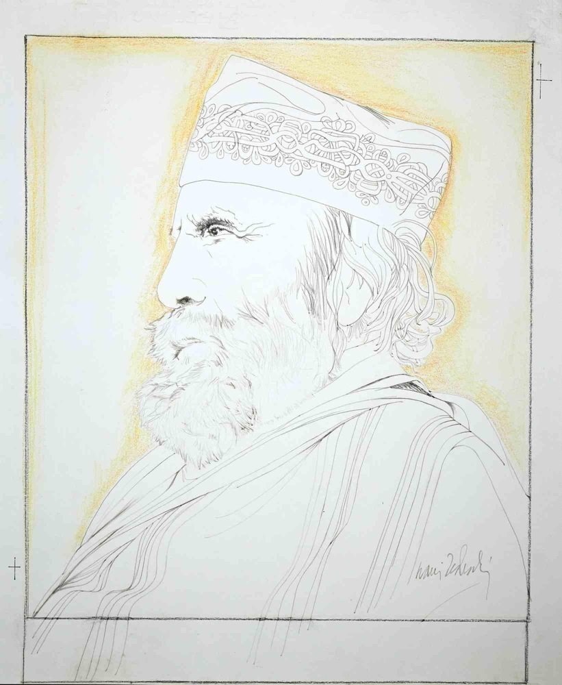 Nani Tedeschi, Portrait of Giuseppe Garibaldi, Original Drawing, 1970s