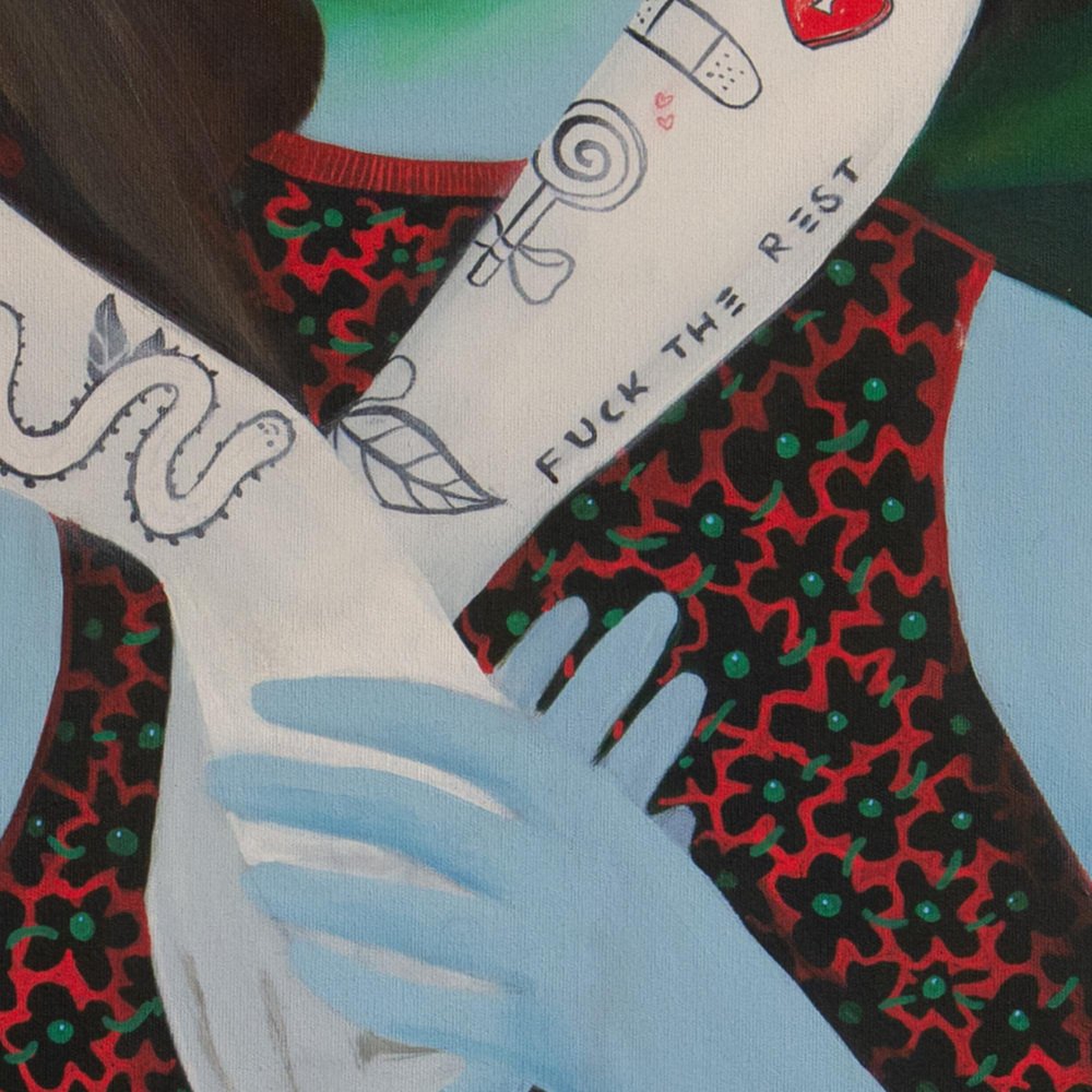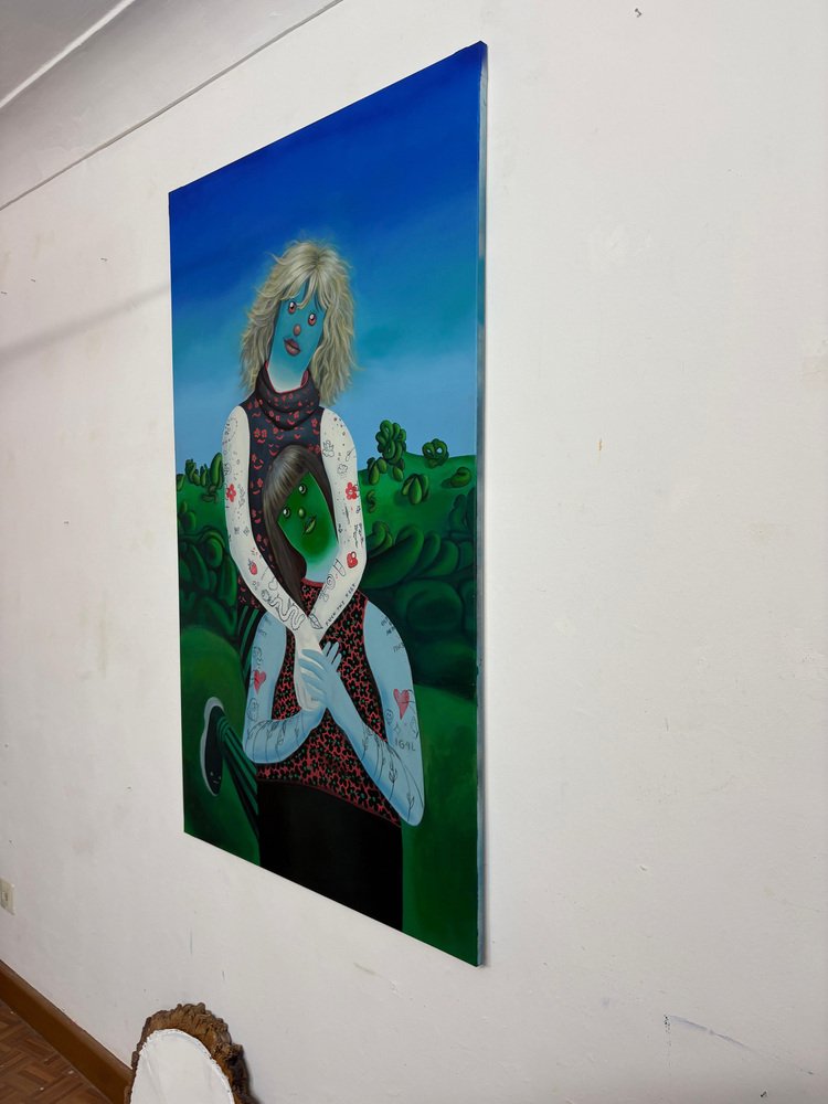Natasha Lelenco, Emoji Double Portrait, Acrylic and Spray Paint on Canvas, 2025