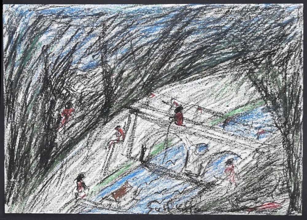 Nazareno Gattamenata, Tiber, Original Oil Pastel on Paper, 1975