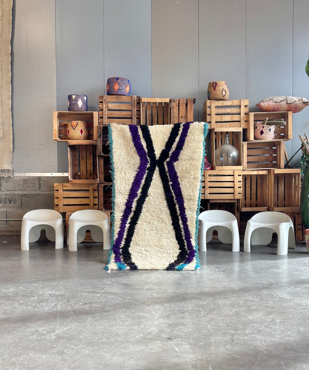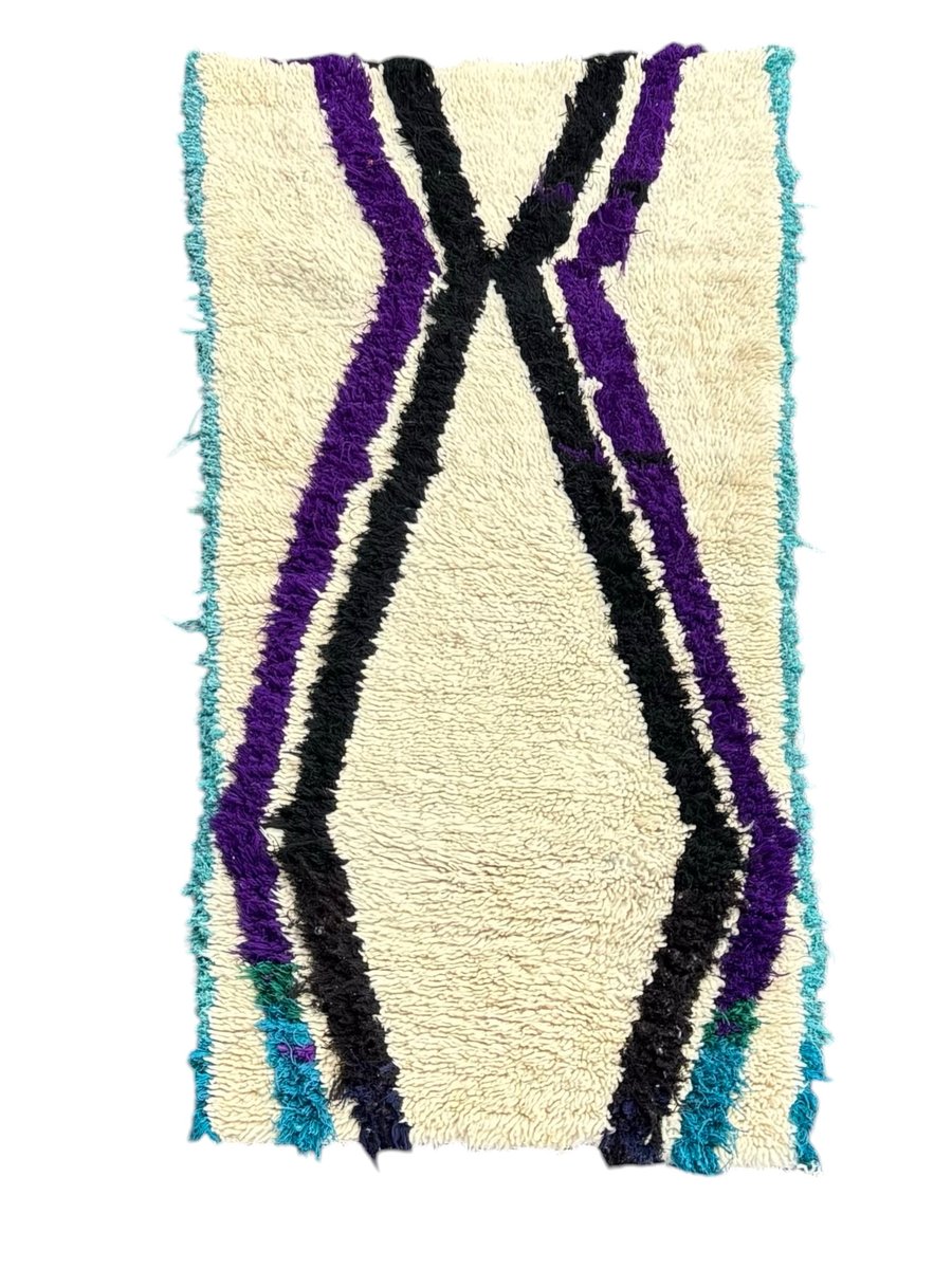 New Moroccan Boujad Rug, Handwoven Wool, 160 X 270 Cm Vibrant Tribal Design, 1990s