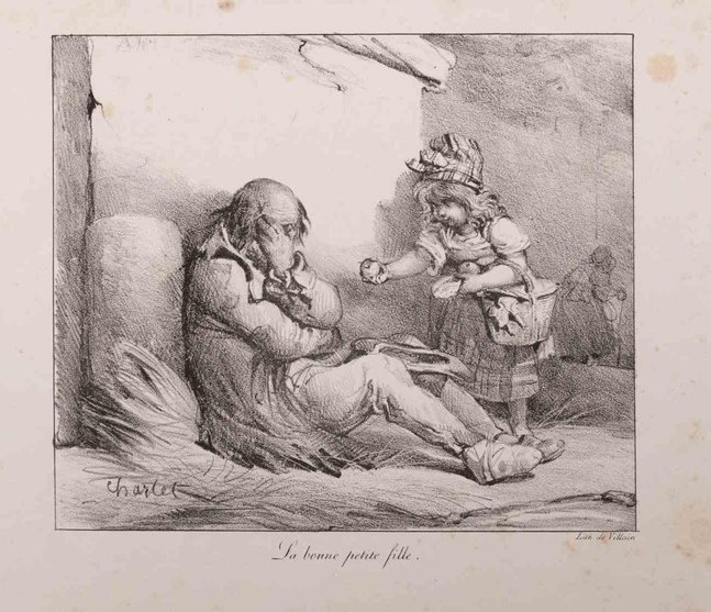 Nicolas Toussaint Charlet, La Bonne Petite Fille, Original Lithograph, 1800s