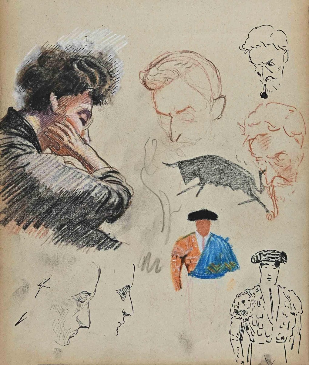Norbert Meyre, The Figures Sketches, Drawing, Mid 20th-Century
