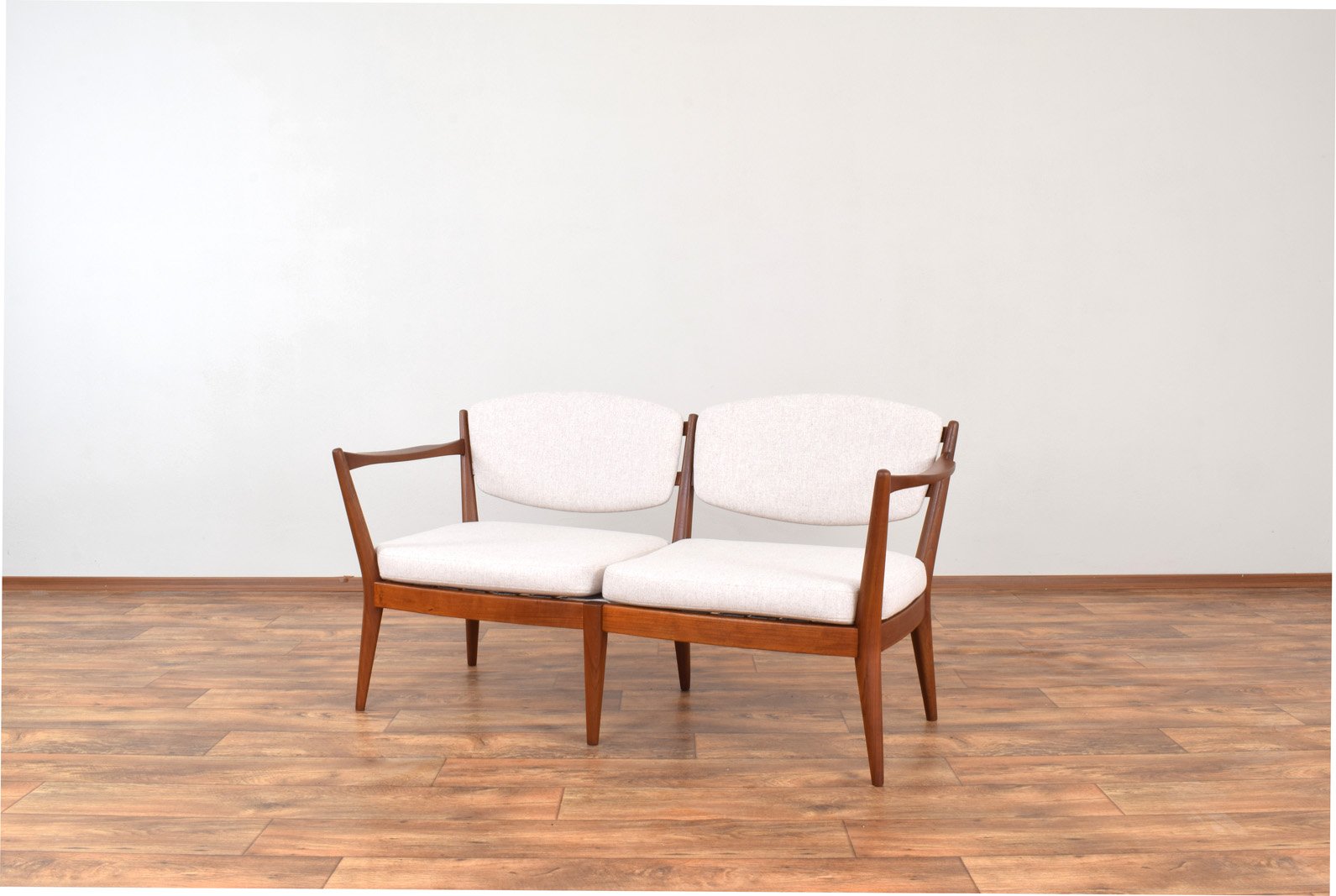 Set of Mid-Century Modern Danish Wood and Linen Lounge Chairs, 1960s, Set of 2