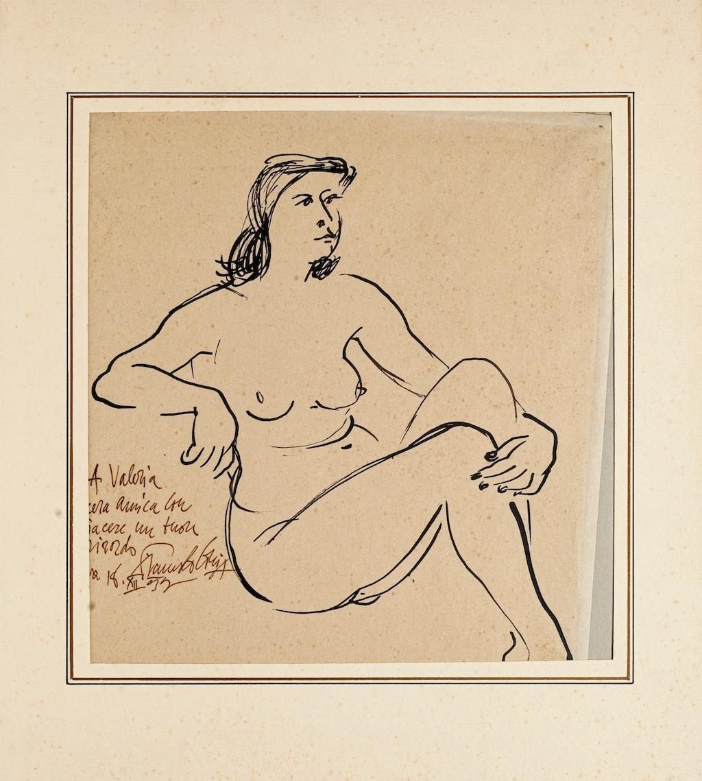 Nude - Original Pen on Ivory Paper by Fausto Ghia - 1955 1955