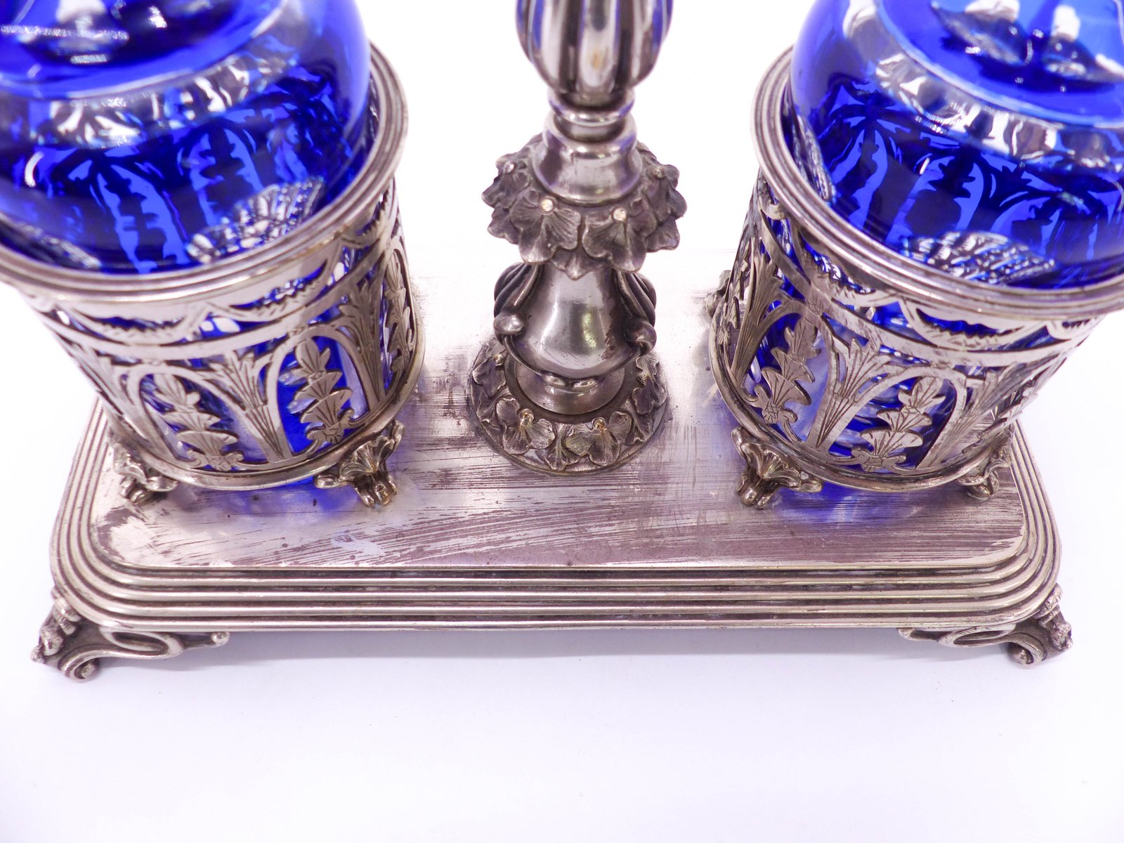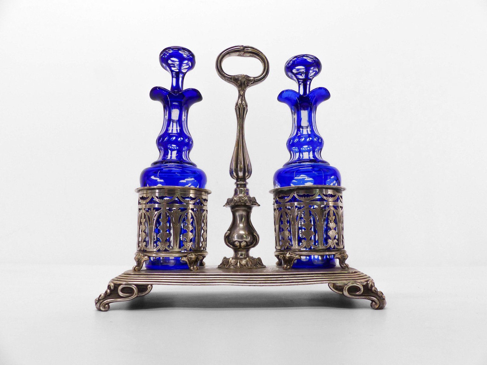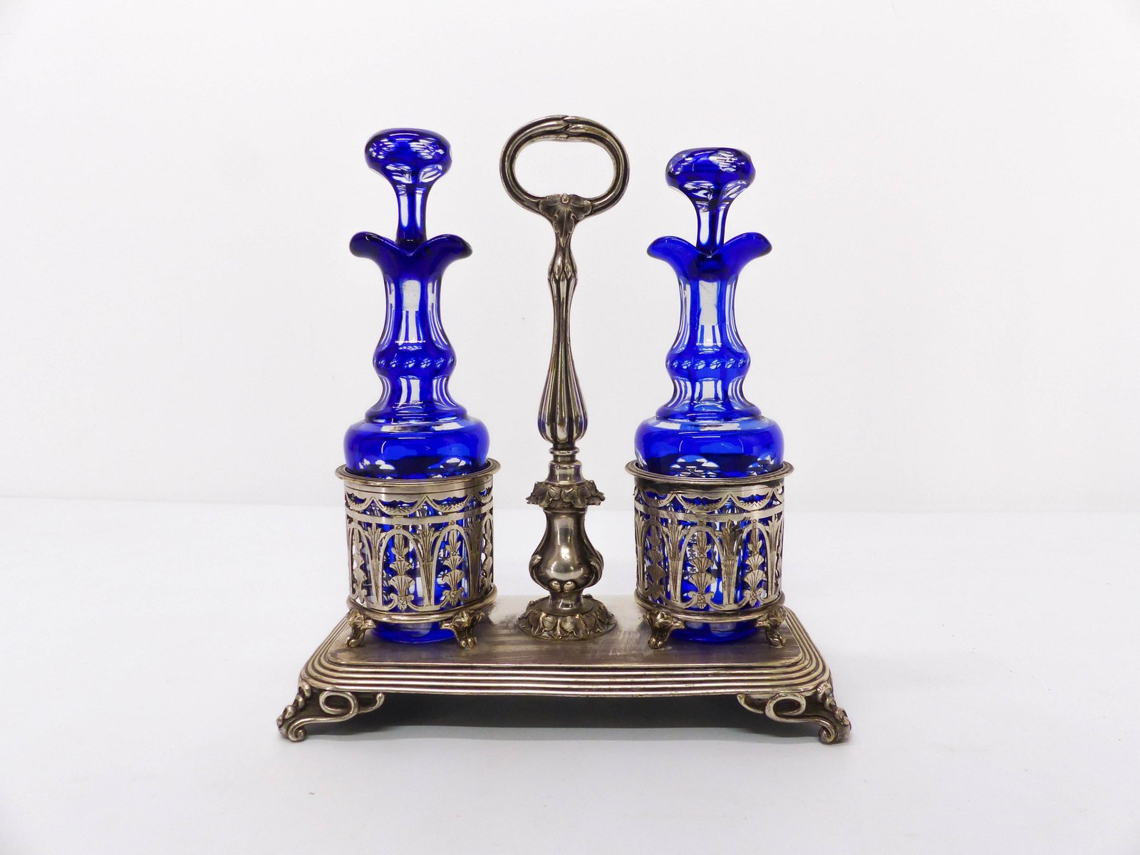 Oil and Vinegar Pot in Silver and Cobalt Blue Crystal from Christofle, 19th Century, Set of 3
