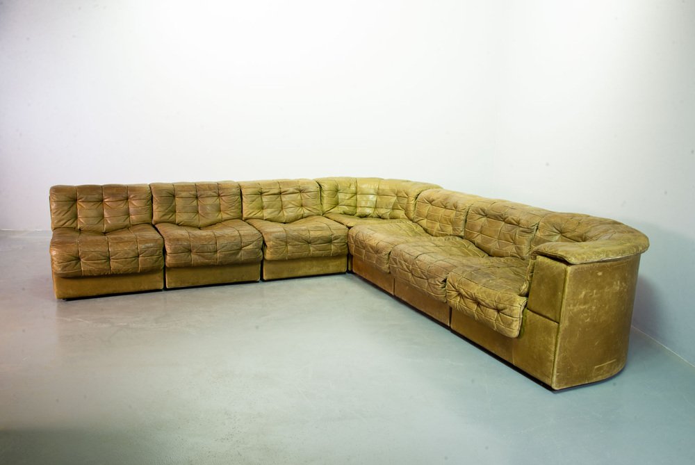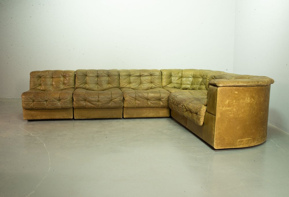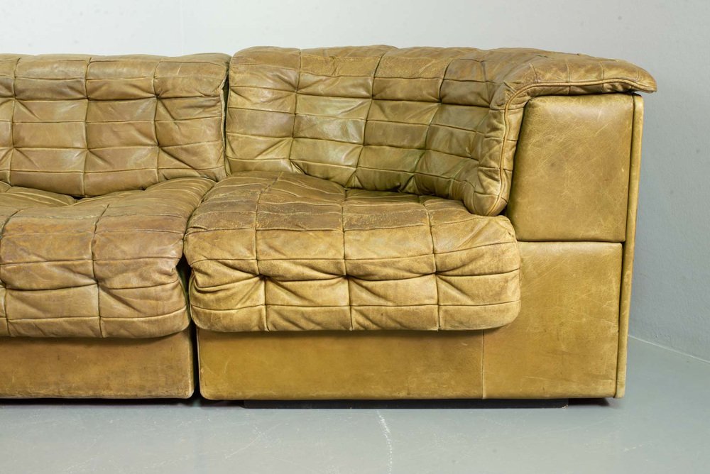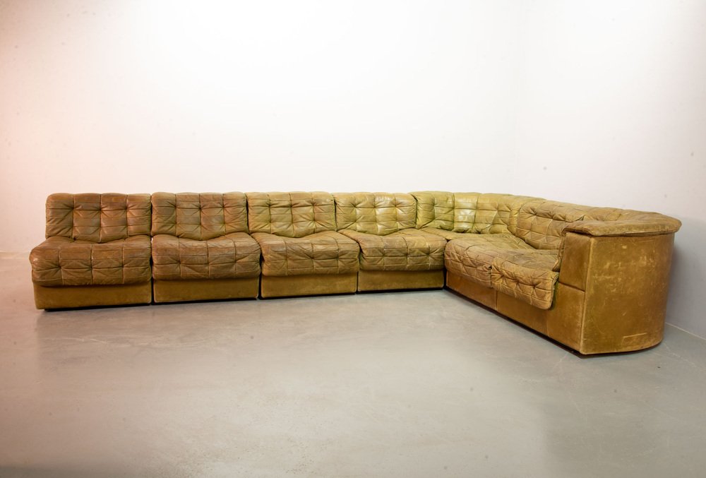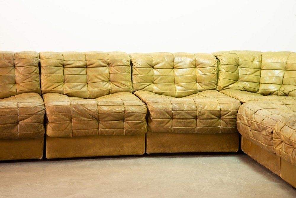 Olive Green Patched Leather DS11 Modular Sofa from de Sede, Switzerland, 1970s, Set of 6