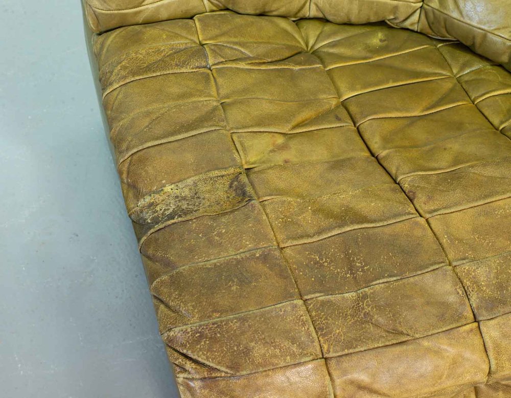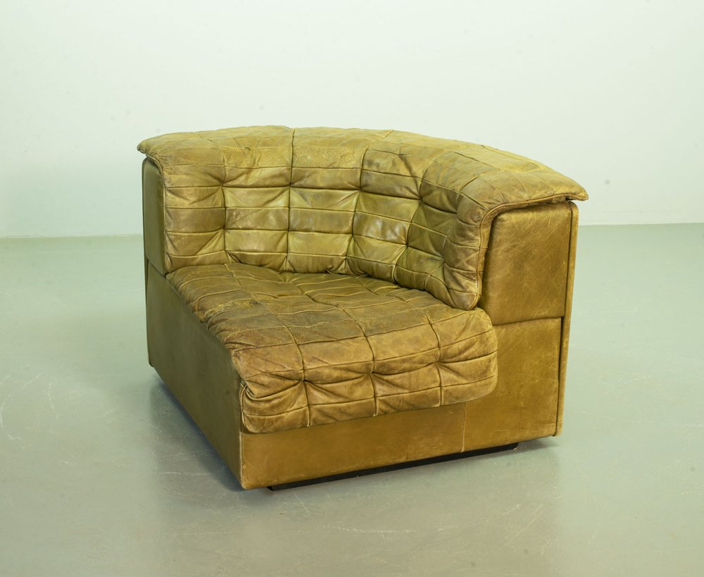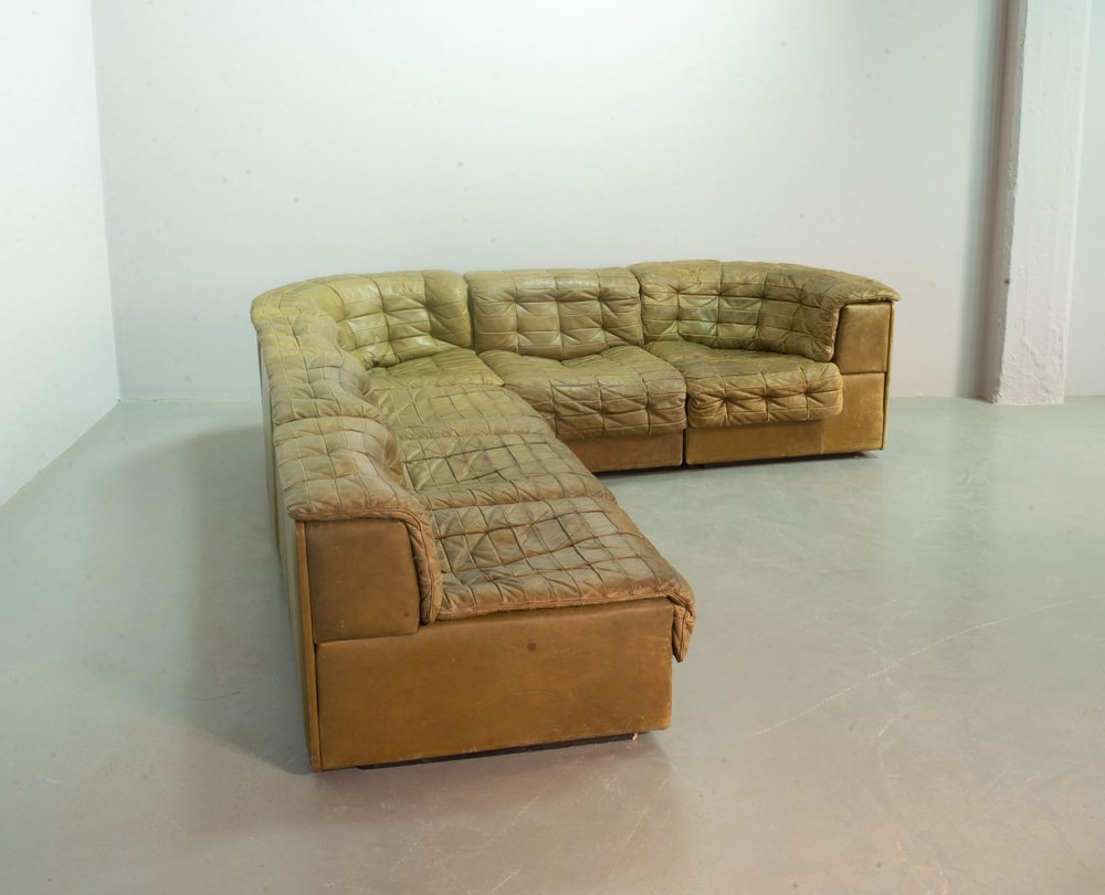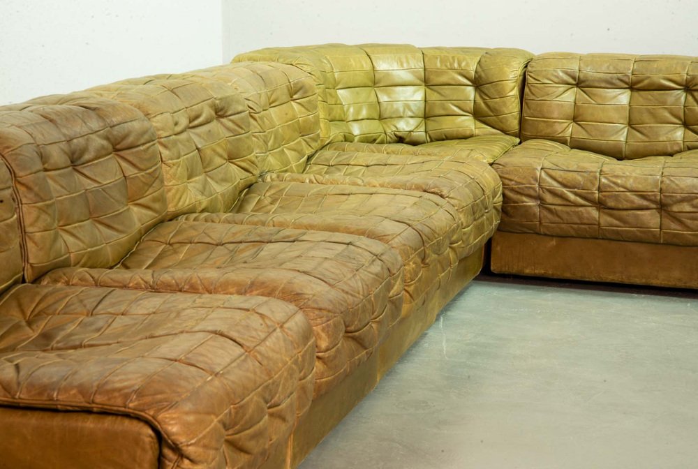 Olive Green Patched Leather DS11 Modular Sofa from de Sede, Switzerland, 1970s, Set of 6