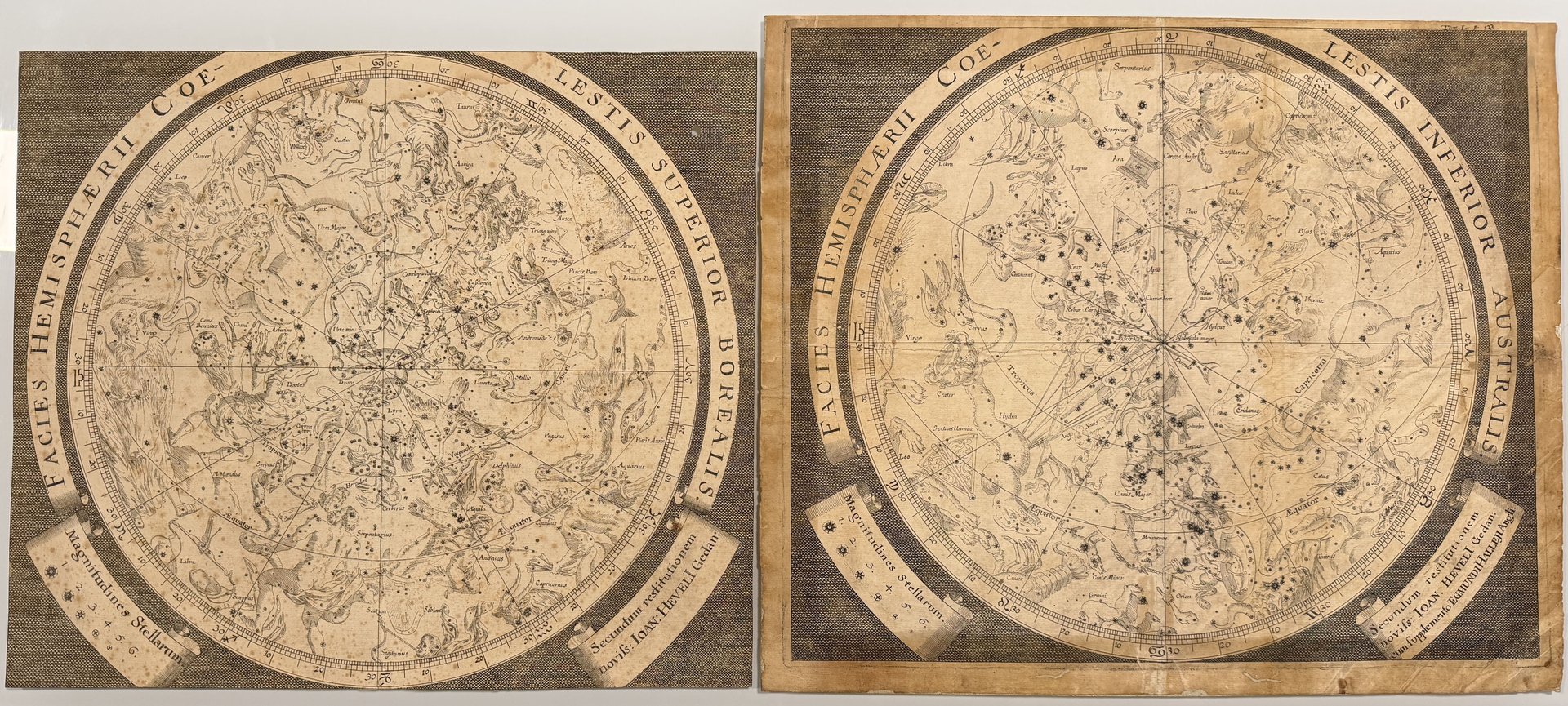 Original Celestial Charts by Johannes Zahn, Nuremberg, 1690s, Set of 2