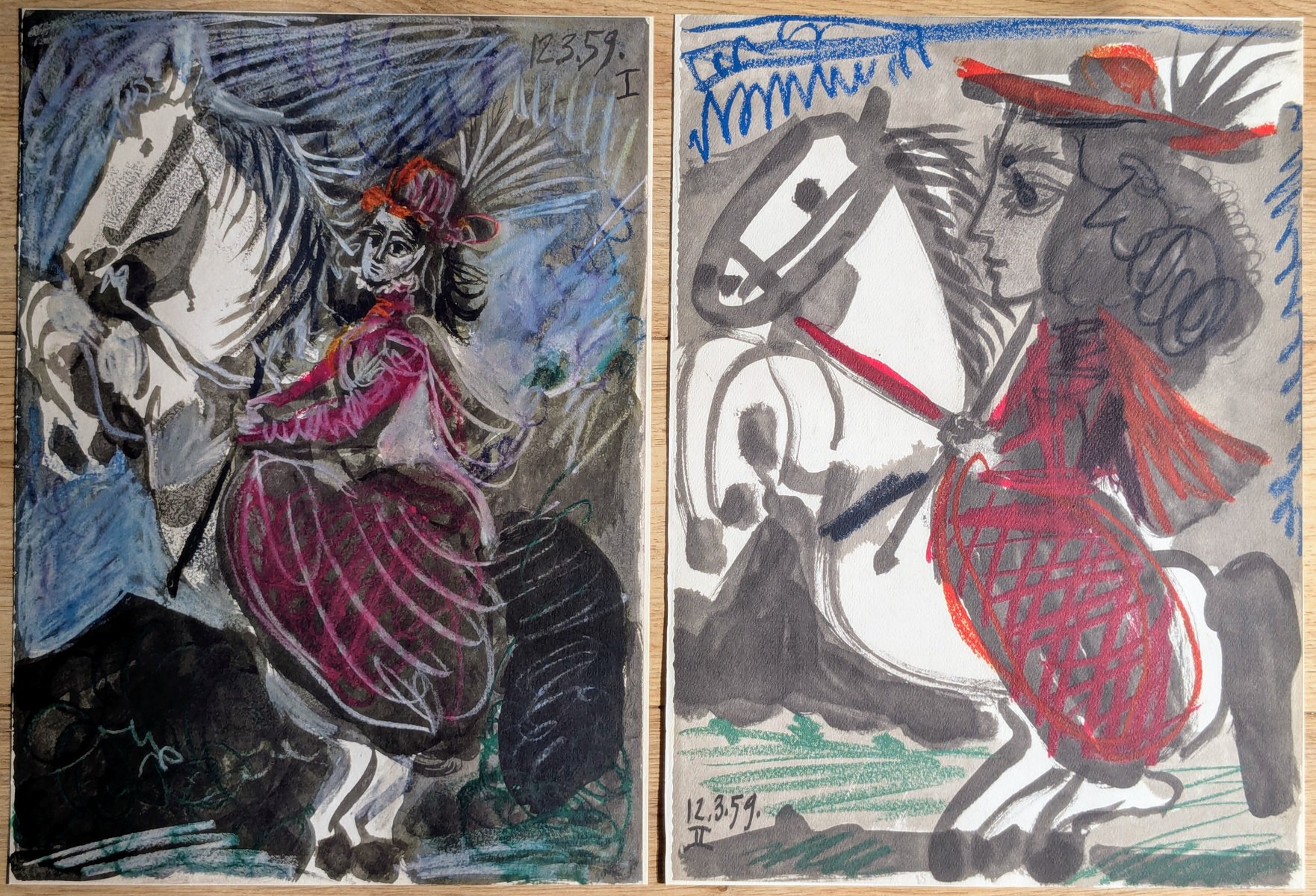 Pablo Picasso, The Knight Girl (Jacqueline Riding), 1961, Original Signed Lithographs in Color, Set of 2