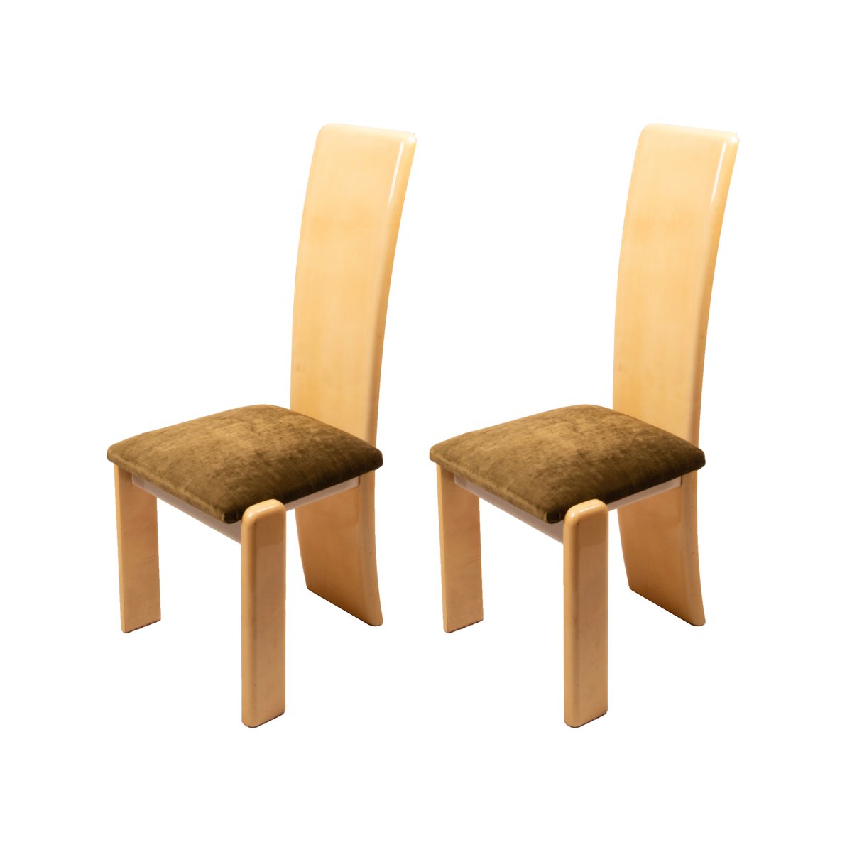Distinctive Design: High, slightly curved backrest that lends momentum and verticality, legs integrated into the volume with formal continuity that lend a sculptural and elegant character, vibrant and iridescent surfaces typical of handcrafted parchment.