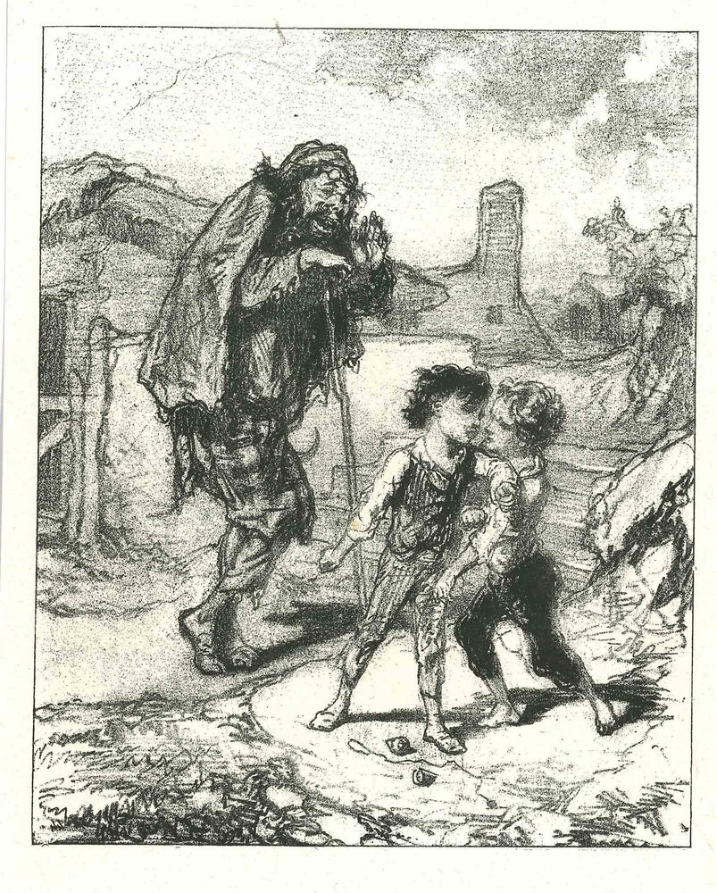 Paul Gavarni, The Passenger Talking to Children, Original Lithograph, 1881