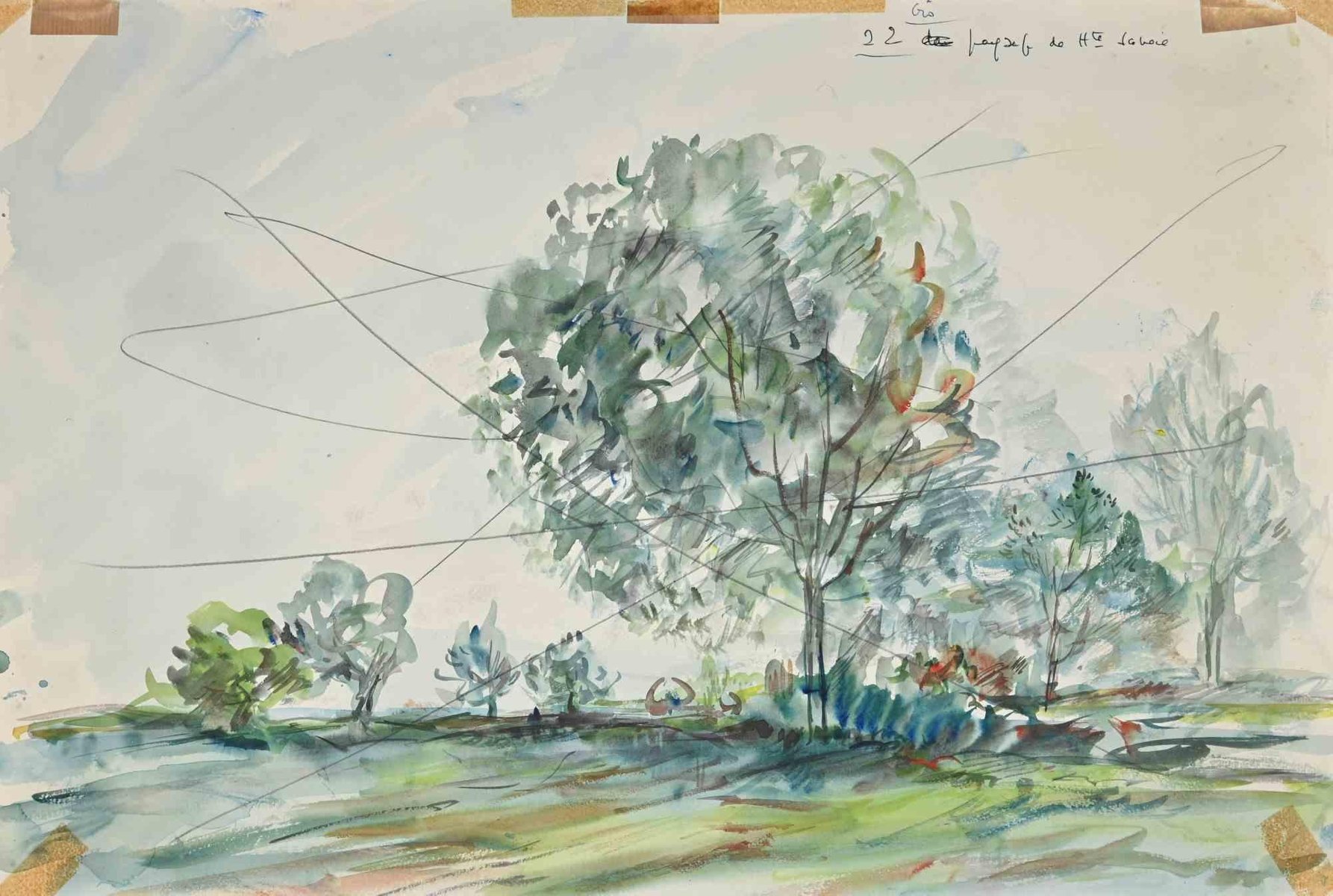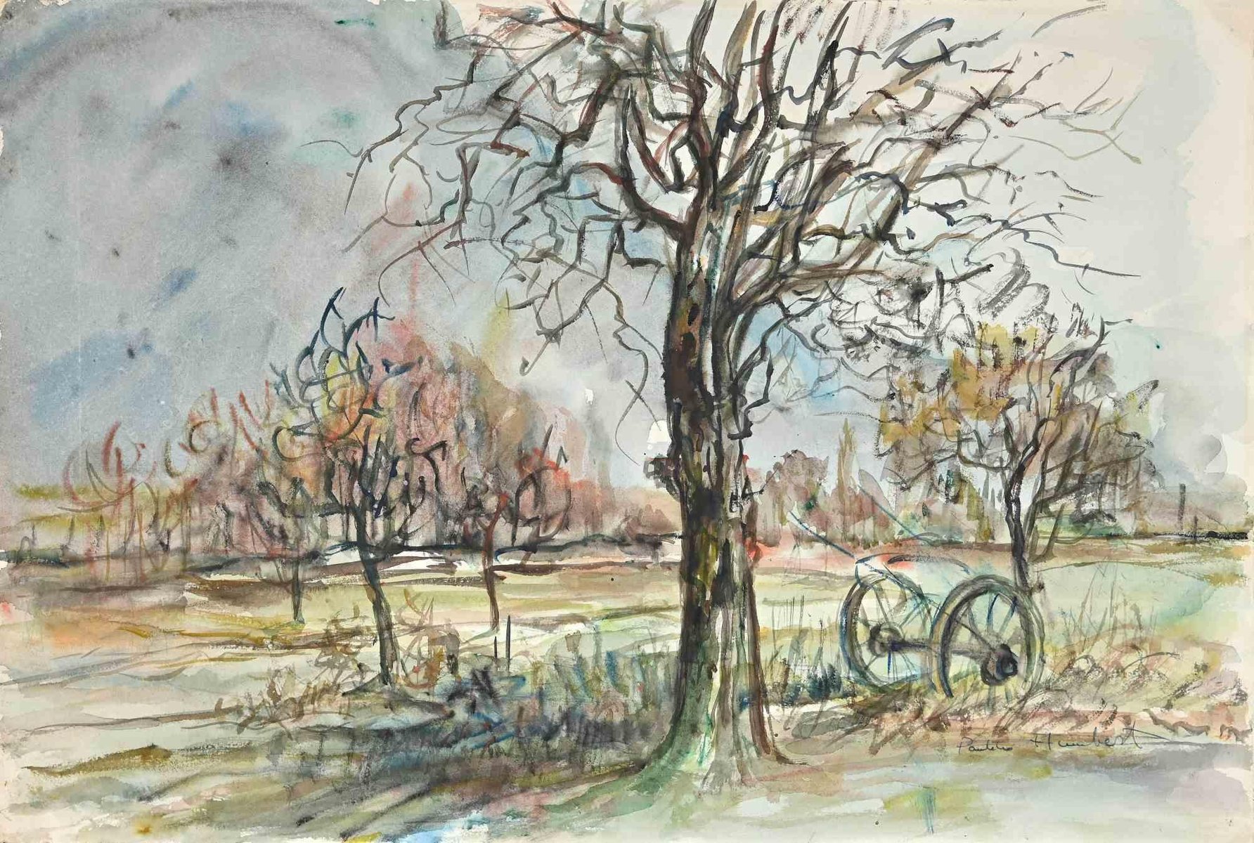 Paulette Humbert, Landscape, Original Drawing, Mid-20th-Century