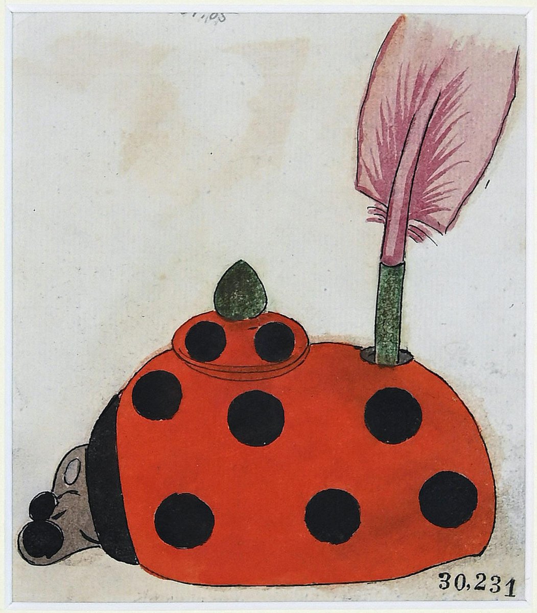 Pen Holder In Porcelain - China Ink and Watercolor Drawing - 1890s