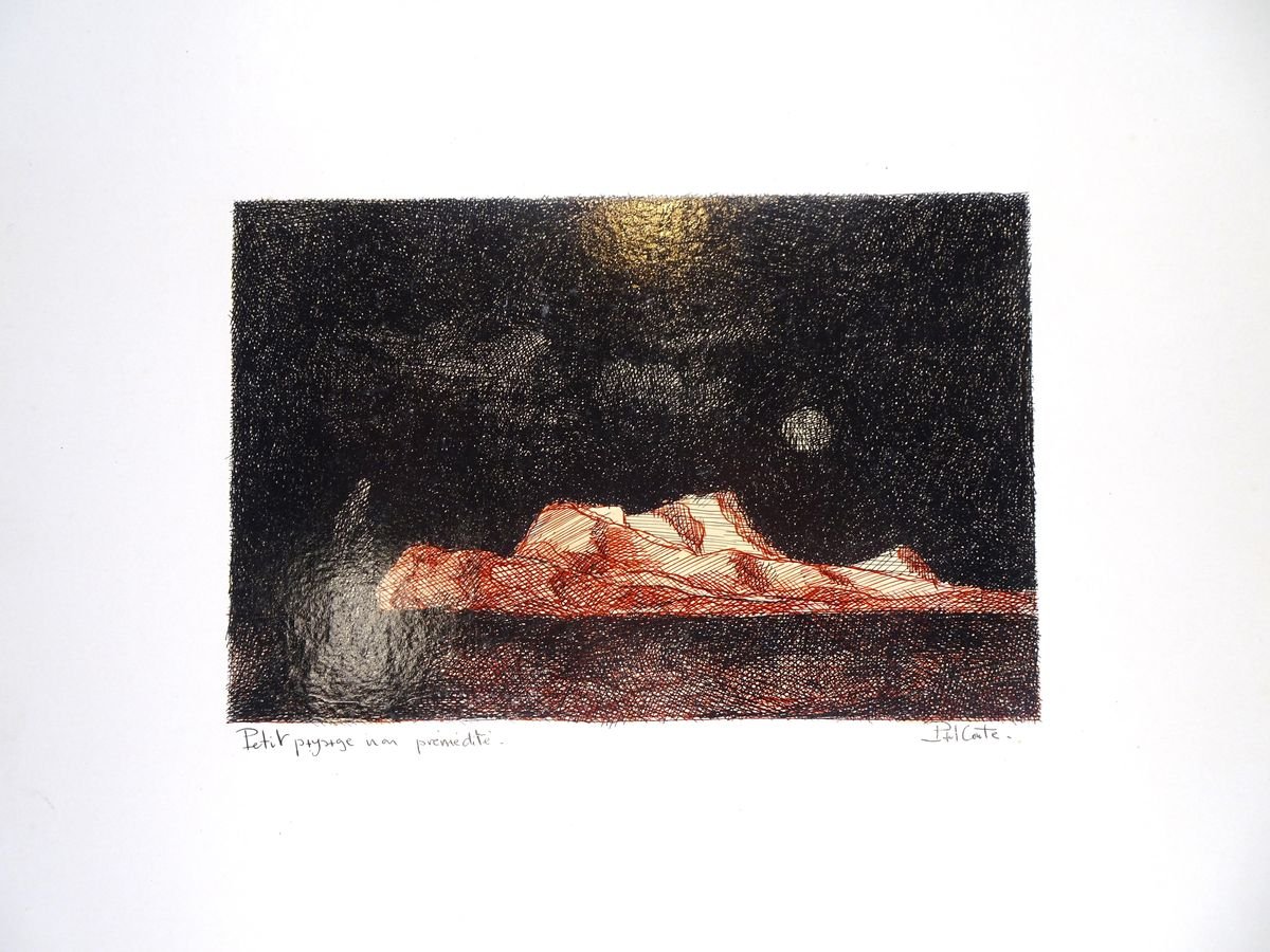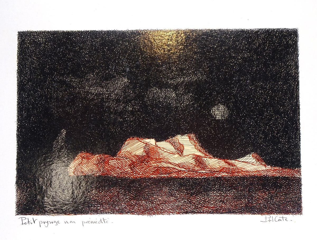 Petit Paysage non Prémédité - Pen Drawing on Cardboard by Paul Conte - 1980s 1980s