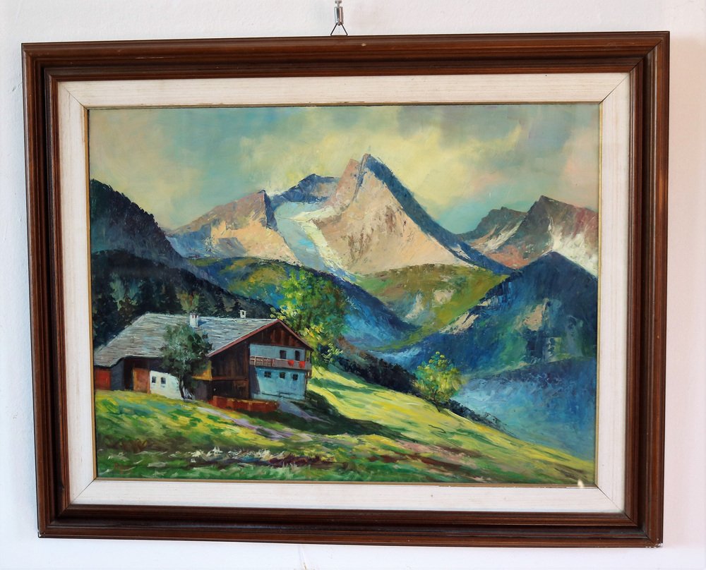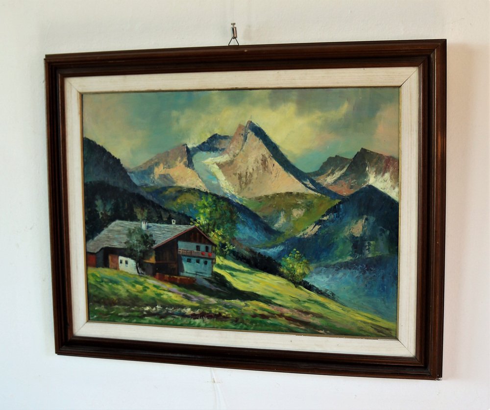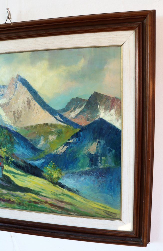 Piero Leo, Mountain Landscape, 1974, Oil on Faesitis