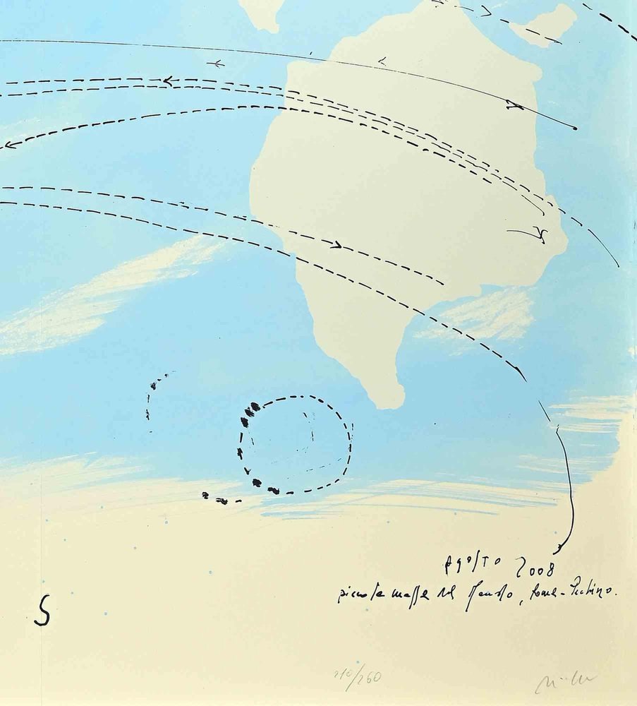 Piero Pizzi Cannella, Little World Map Rome Peking, Olympic Games Beijing, 2008, Lithograph