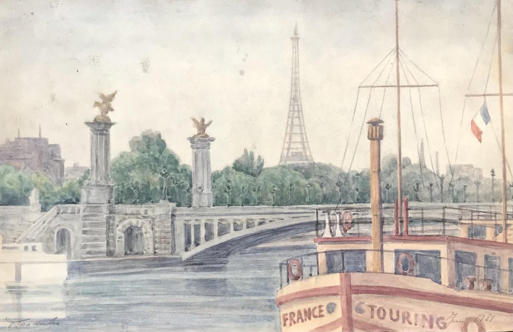 Pierre Desesuis, Alexander IIA Bridge, Paris, 1981, Watercolor & Gouache on Paper