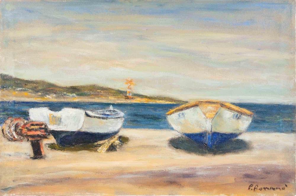 Pino Romanò, Boats in Scilla, Oil Painting, 1990s