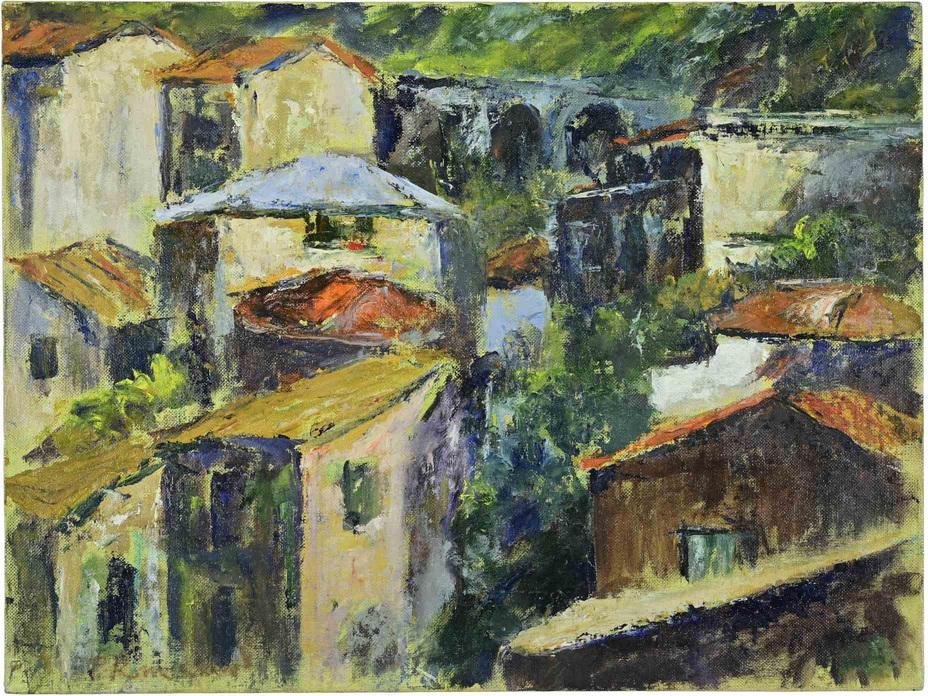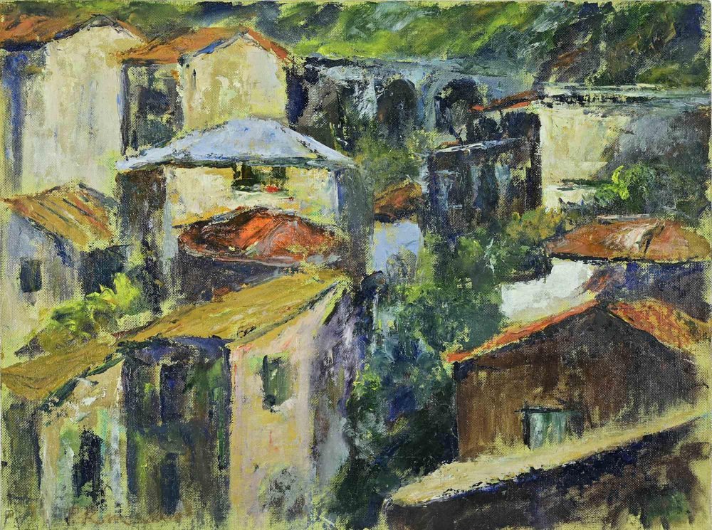 Pino Romanò, Houses in the Countryside, Oil Painting, 1990s