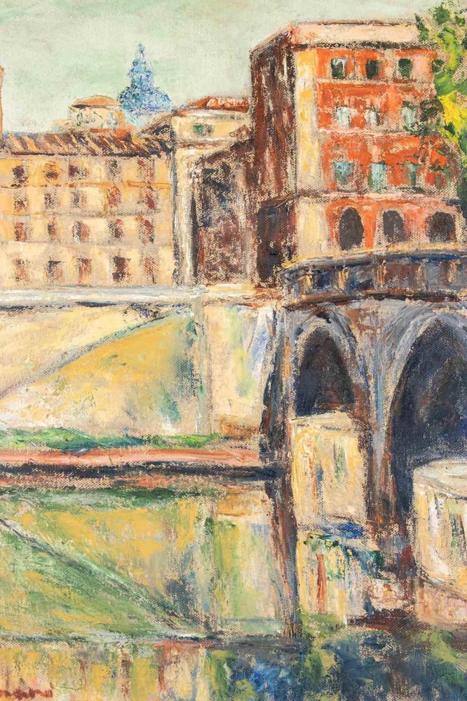 Pino Romanò, View of Ponte Sisto, Oil Painting, 1999