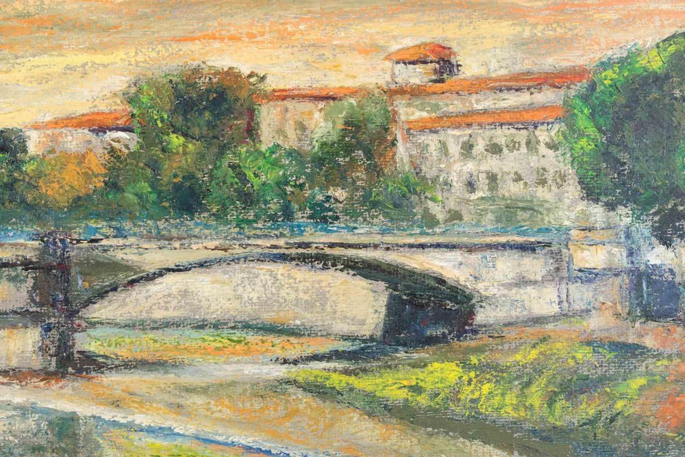Pino Romanò, View of the Tiber (Rome), Oil Painting, 1990s