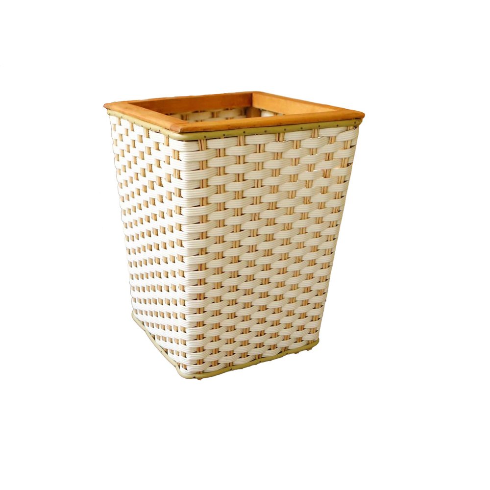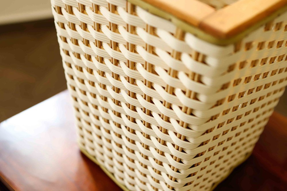 Plastic Wicker Basket with Wooden Frame, 1970s