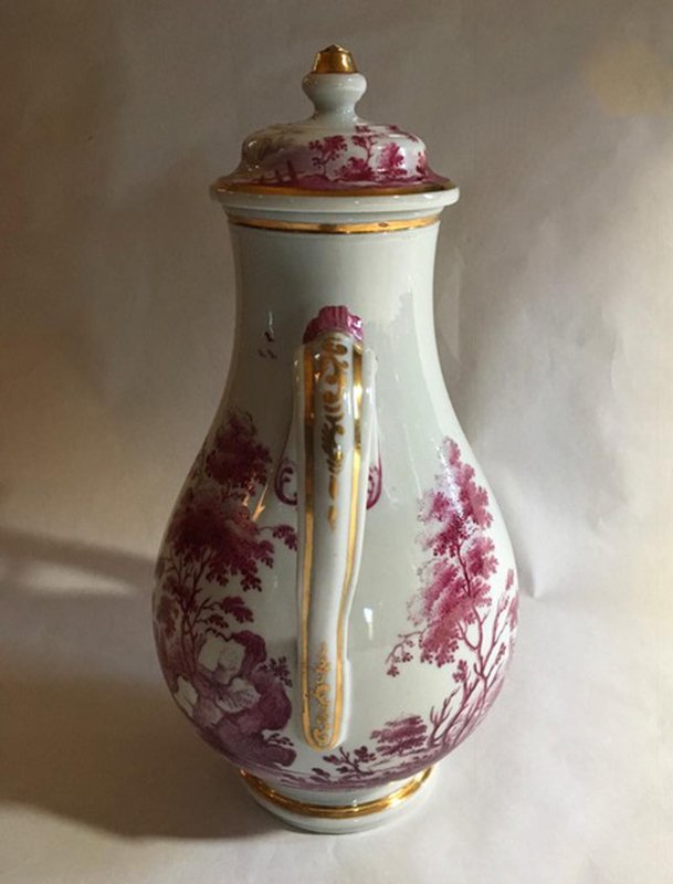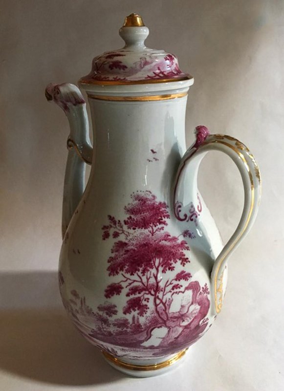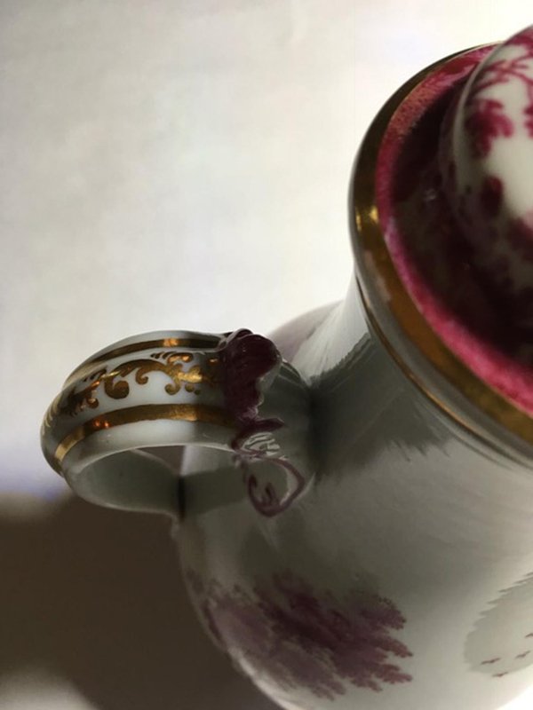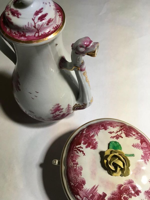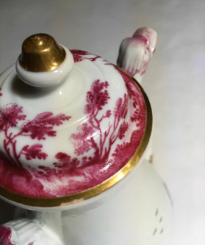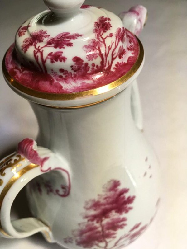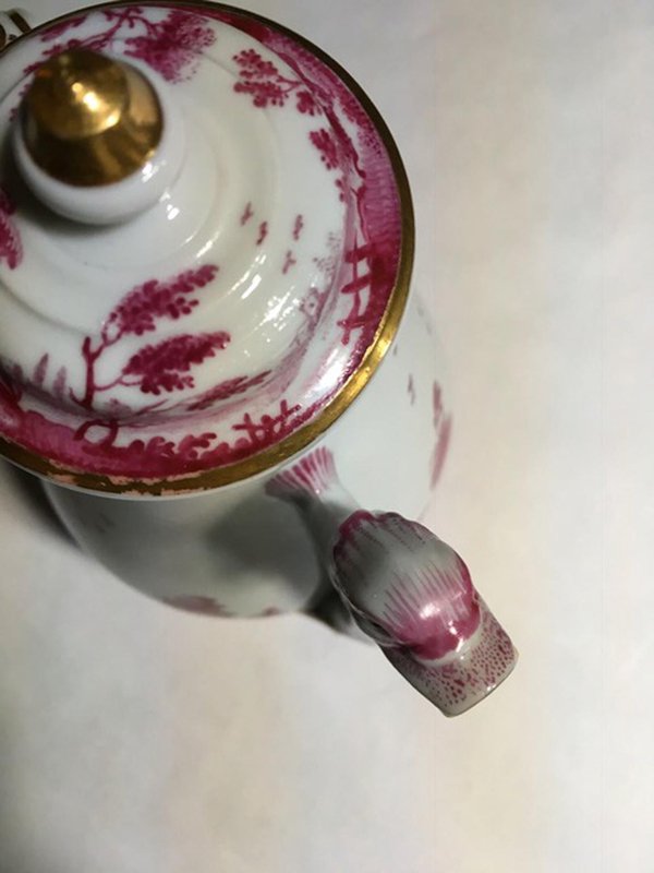 Porcelain Tea Pot with Pink Landscape Decor by Richard Ginori, Italy, 1850s