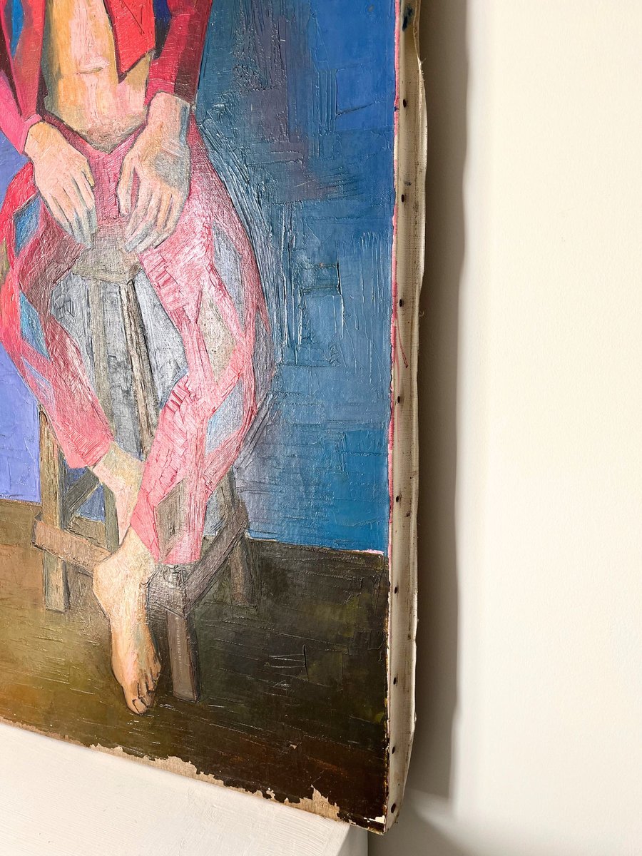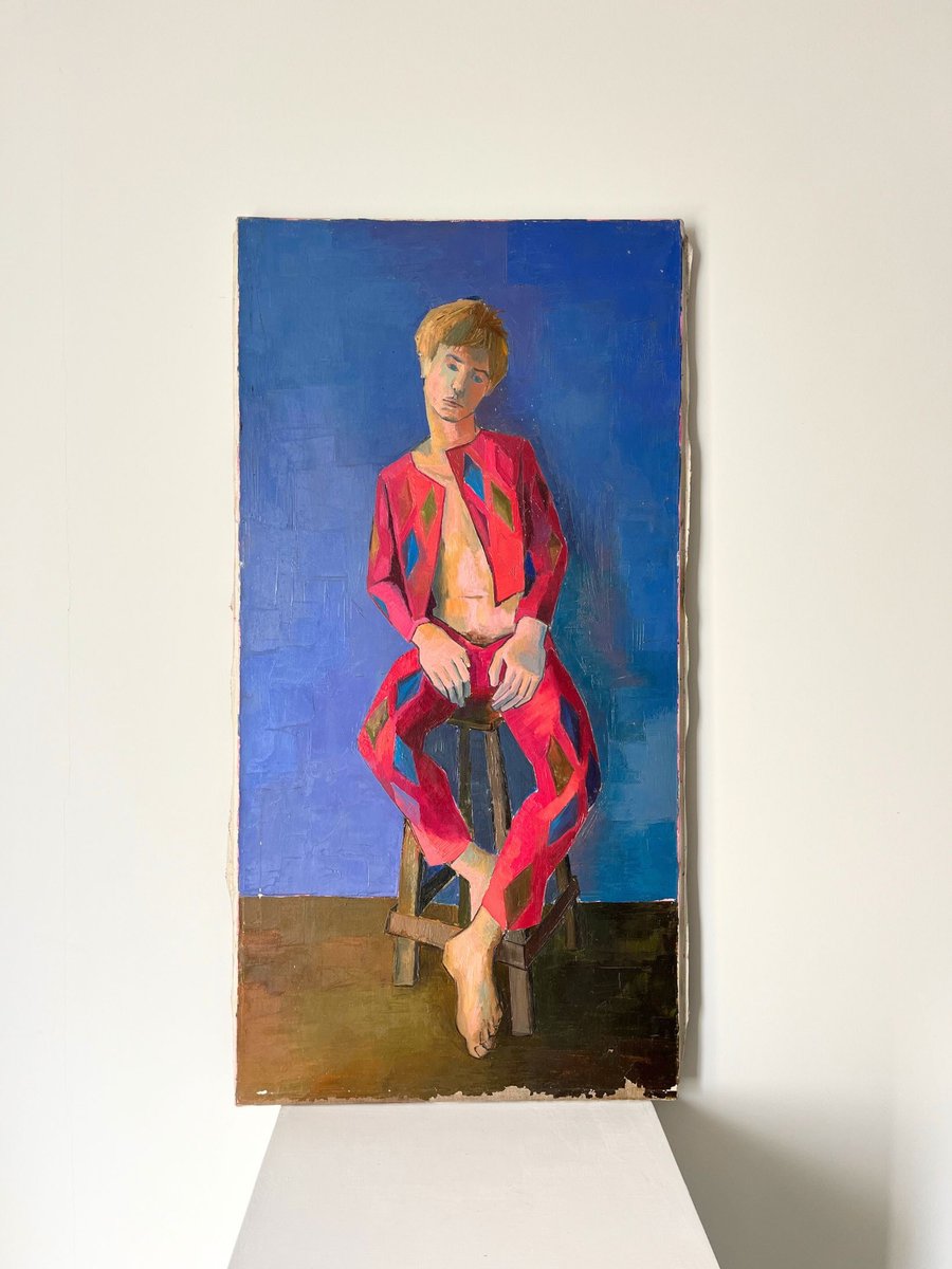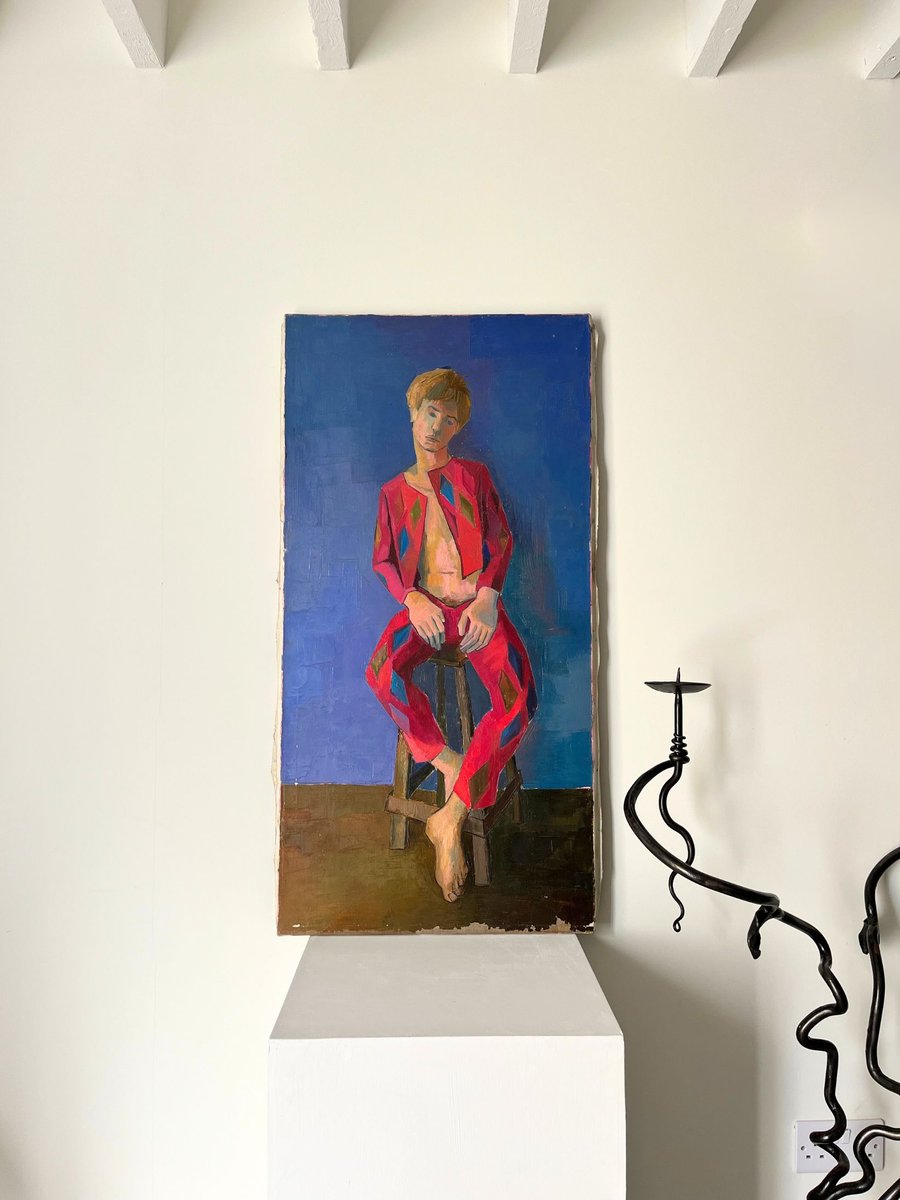 Portrait of a Harlequin, France, 1970s, Oil & Oil on Canvas