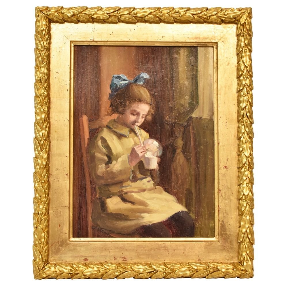 Portrait Painting, Child Playing, Oil Painting, Early 20th Century