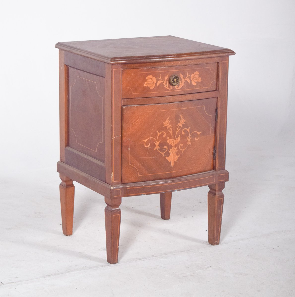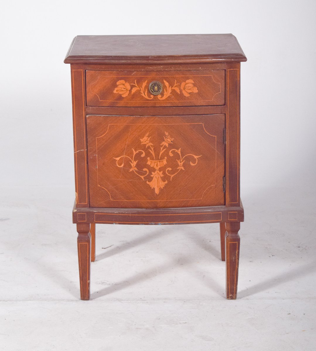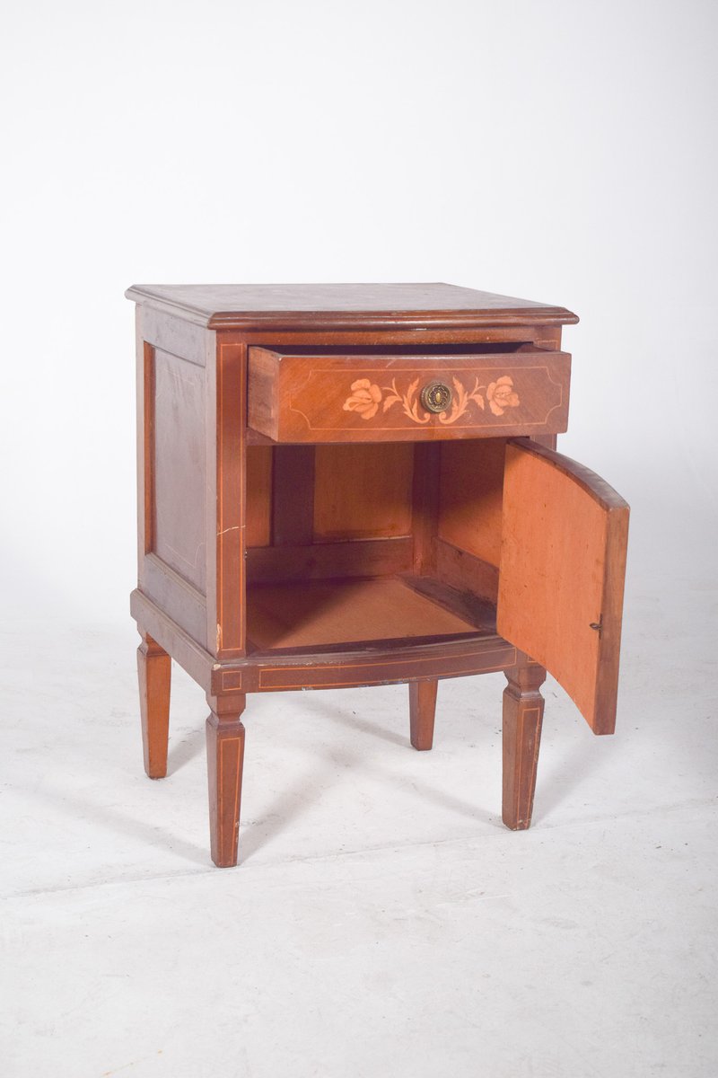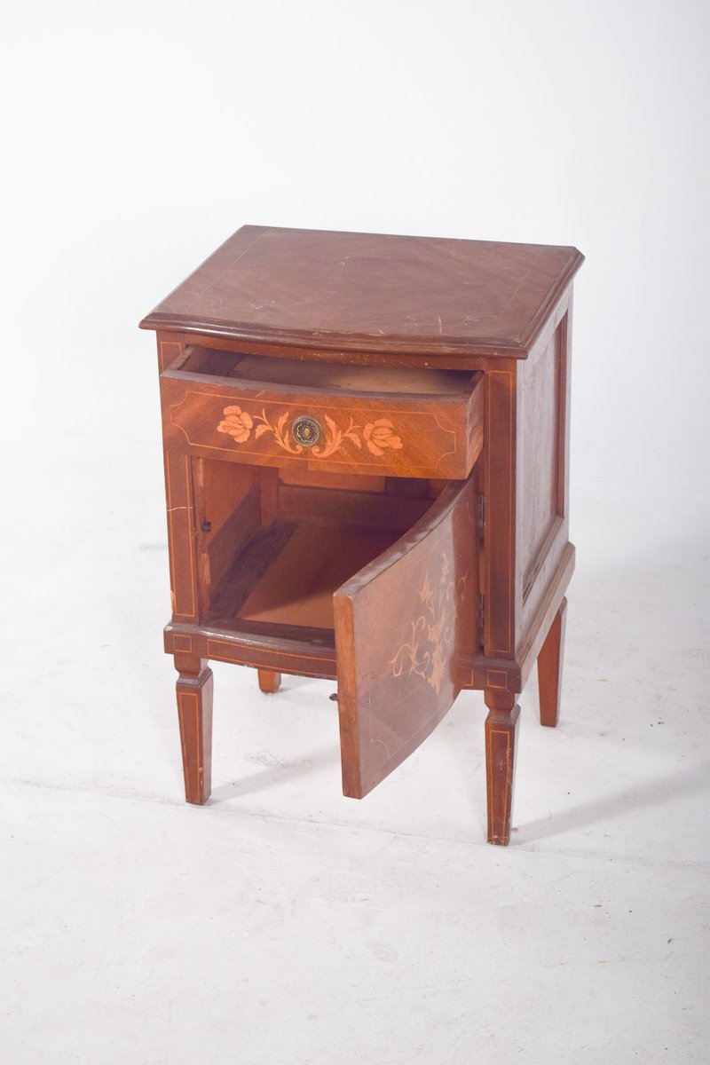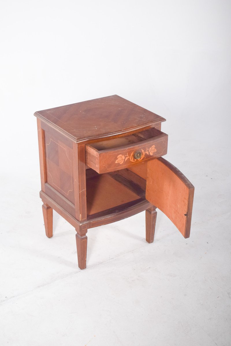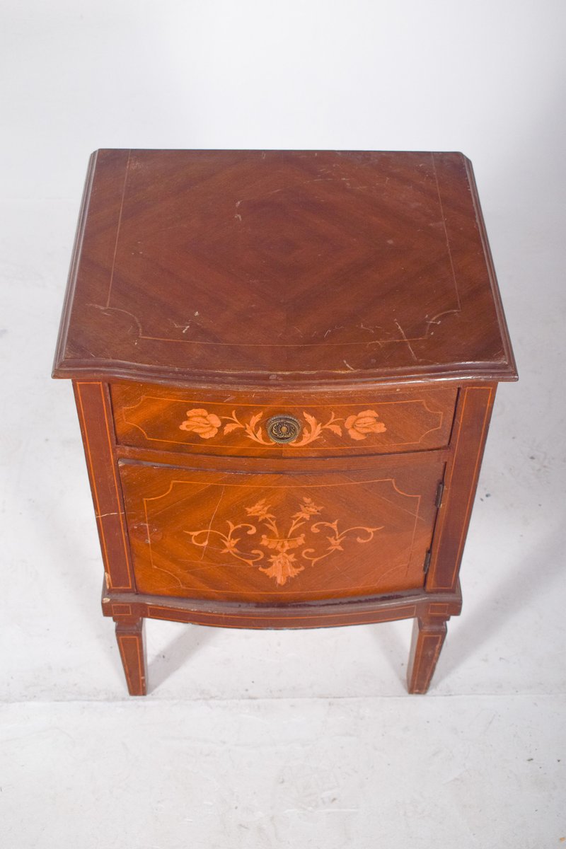 Portuguese Bedside Table with Marquetry Work, 1920s
