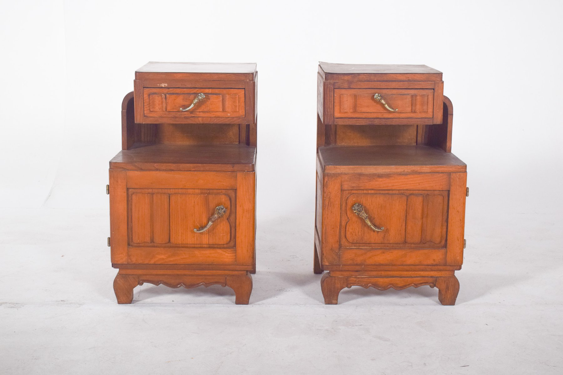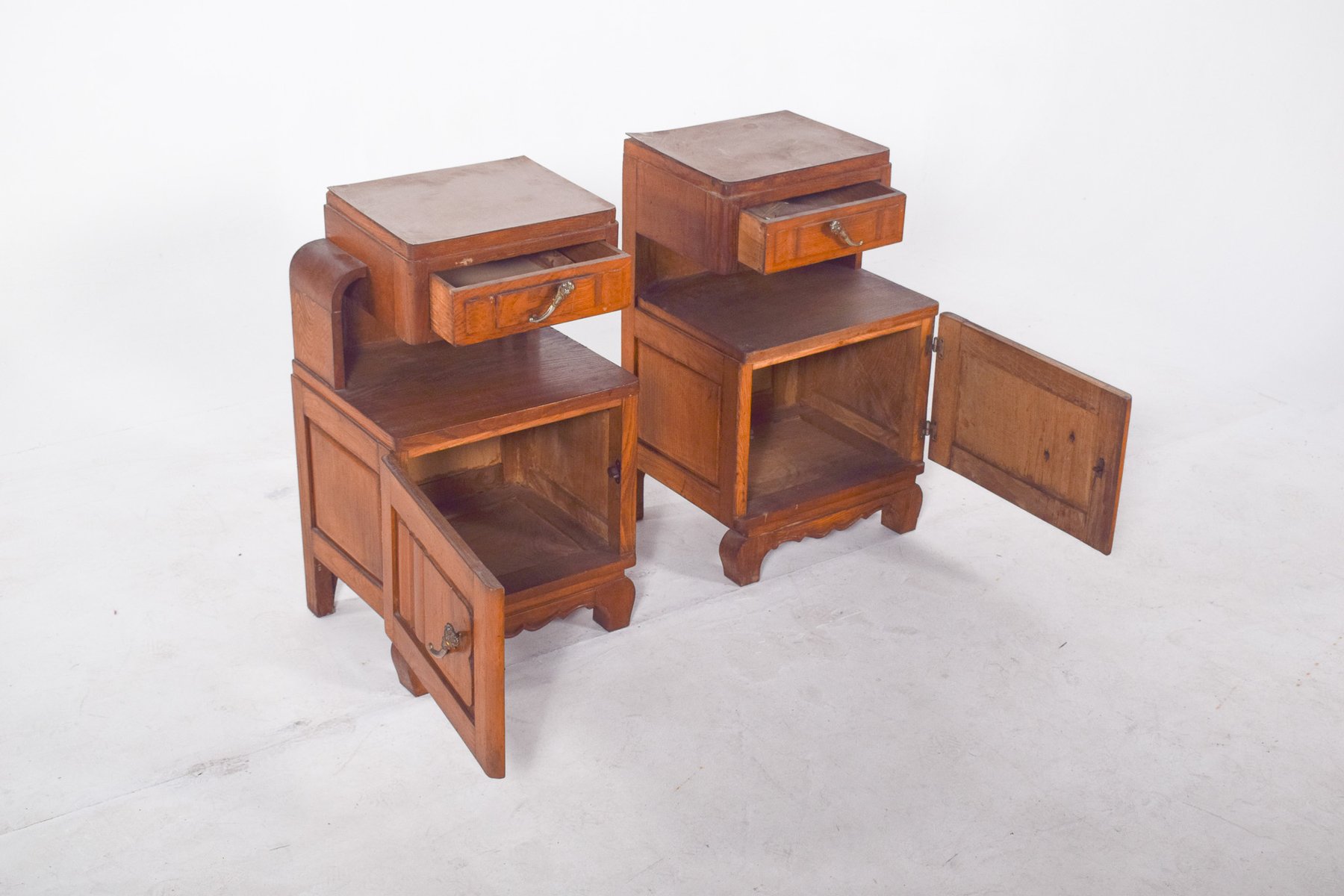 Portuguese Oak Bedside Tables, 1980s, Set of 2