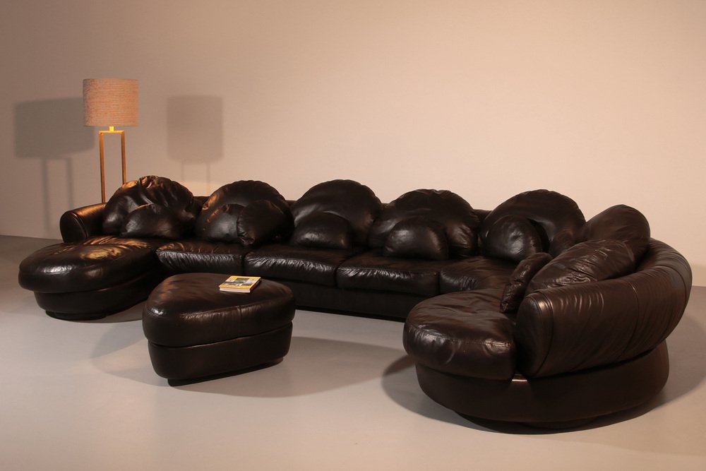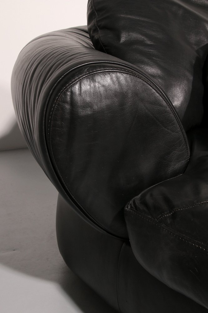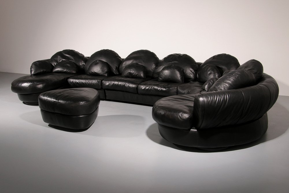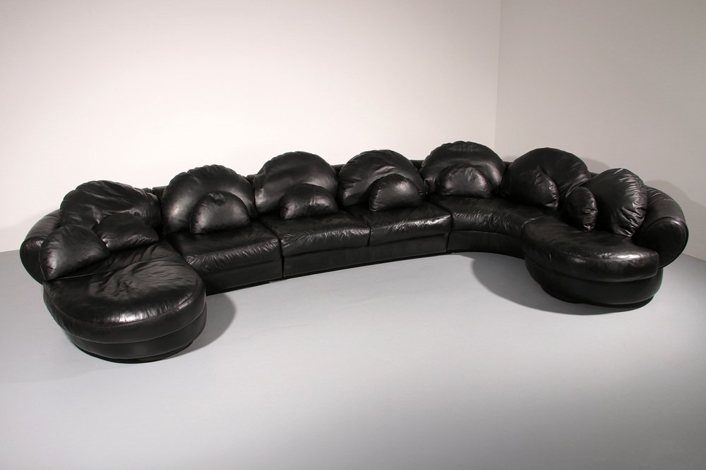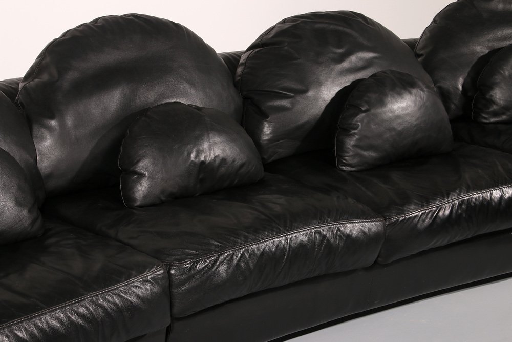 Post-Modern Black Leather Sectional Sofa, 1980s