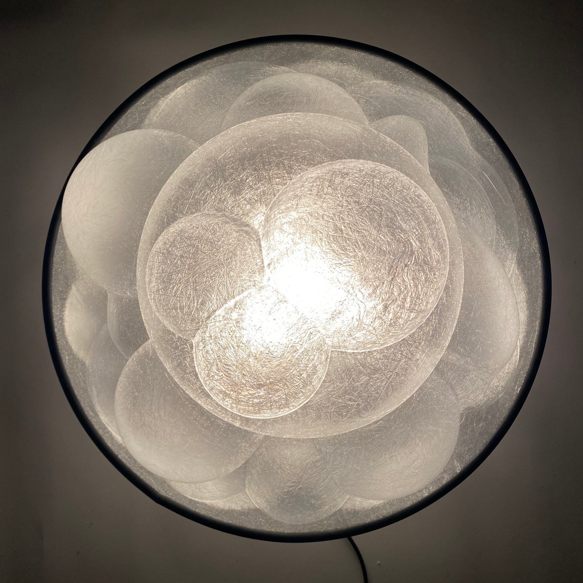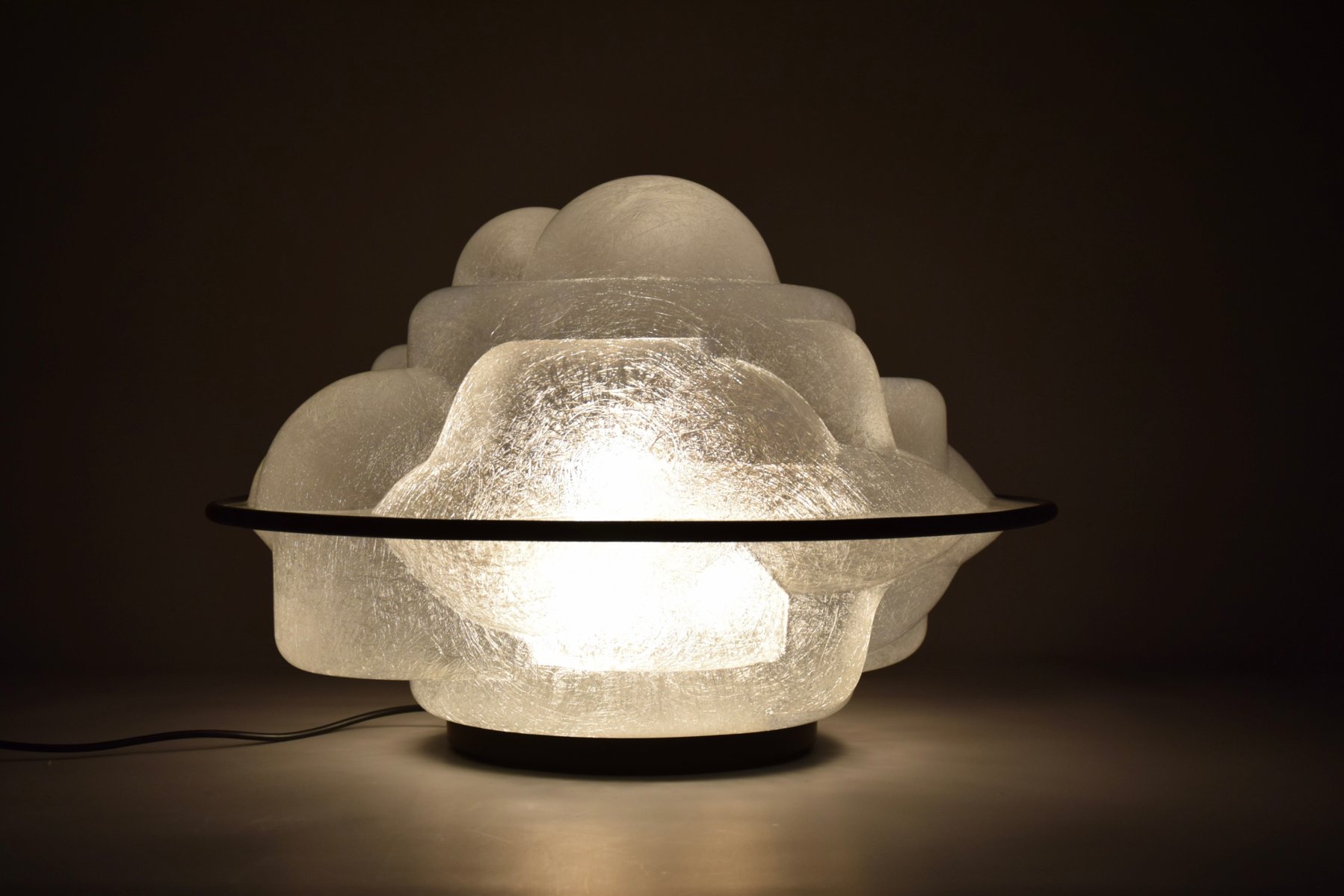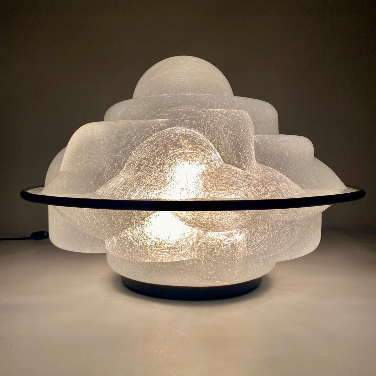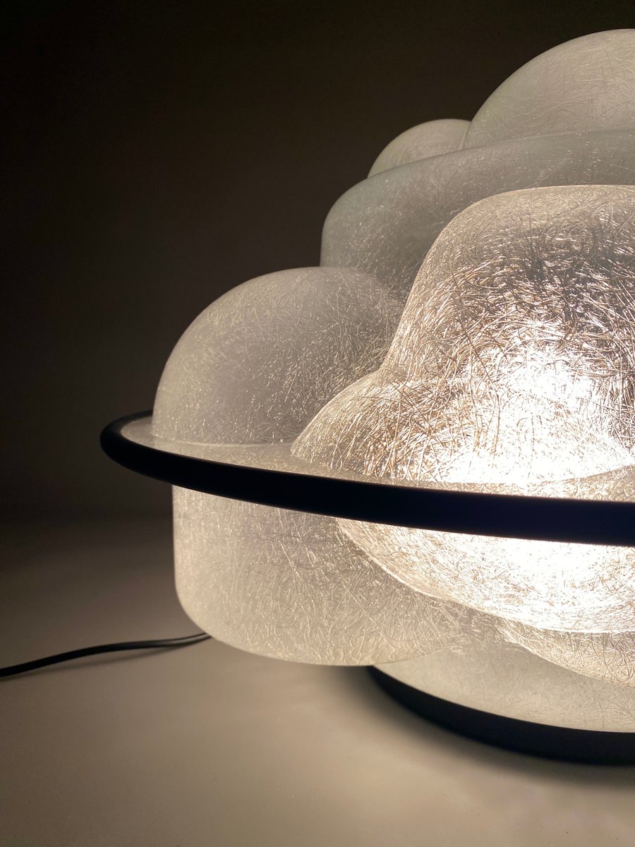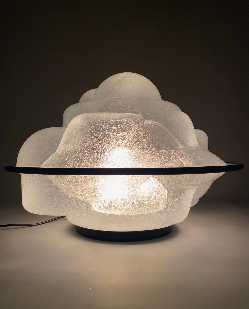 Throughout his career, Martinelli embraced new materials (such as methacrylate plastic), which he used to create functional, yet highly innovative lighting fixtures. Martinelli’s work was representative of the midcentury modernist Italian aesthetic, characterized by an organic geometry that was both rationalist and expressive. Standout pieces include, among others, the space-age table lamps Bolla (1960), Globo (1962), Serpente (1965), Stivale (1967), Cobra (1968), and Foglia (1969), Millepiedi (1972), Elmetto (1976), Dobermann (1980), and the Nuvole Vagabonde (1992-9).