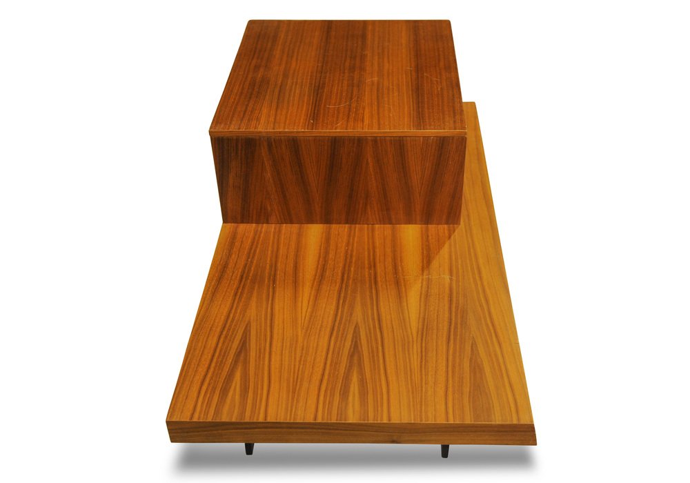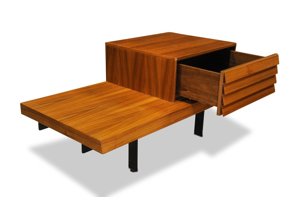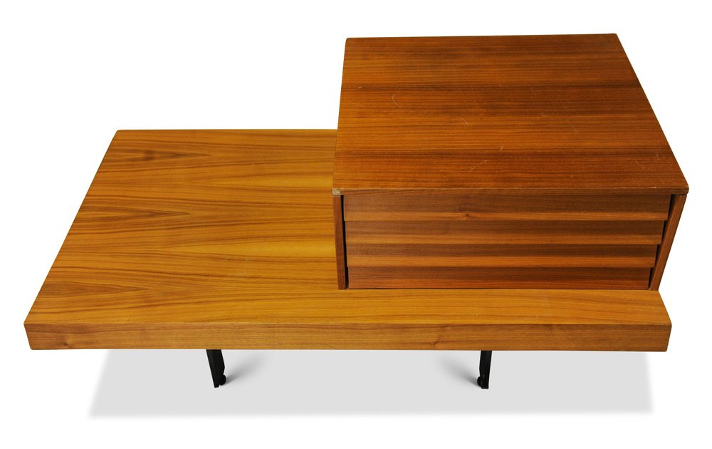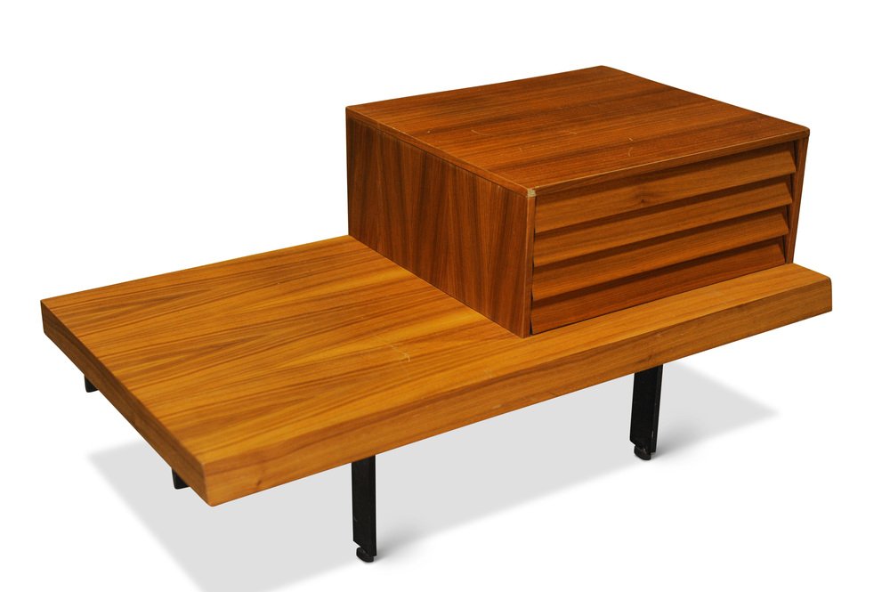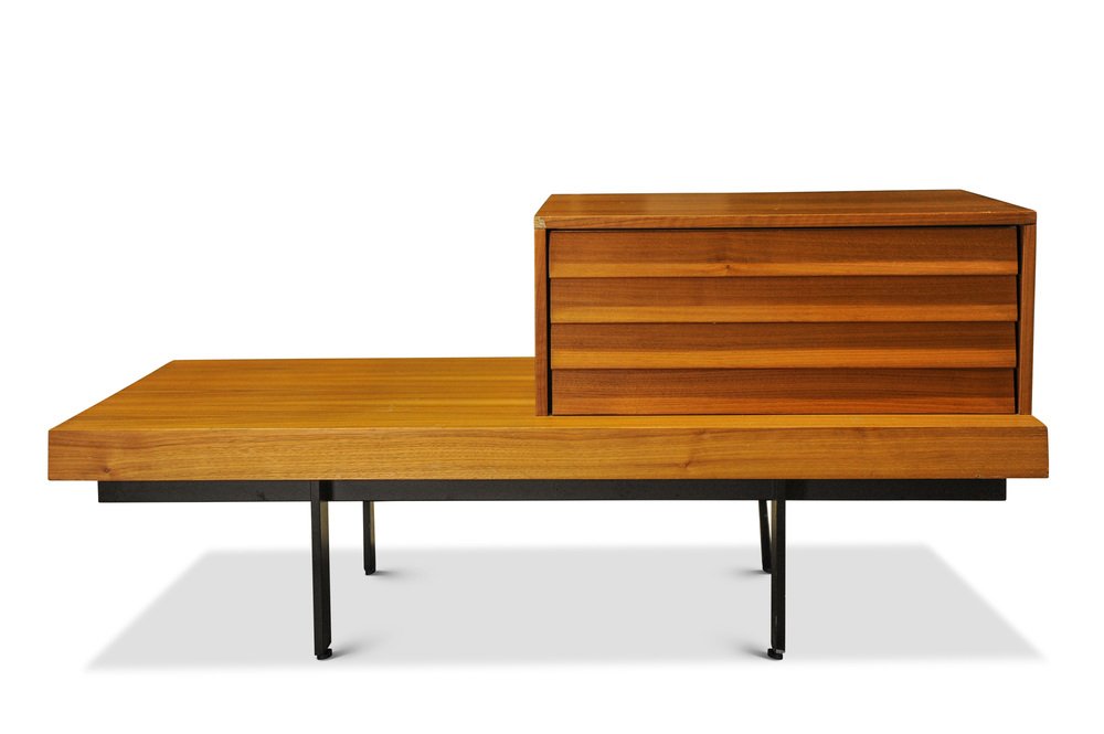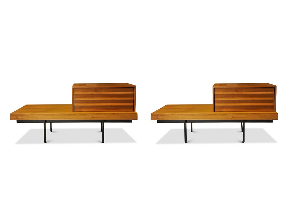 Punt Mobles Teak & Steel Low Bedside Drawers with Louvre Effect Drawers on Metal Bases in Valencia Spain, 1990s, Set of 2