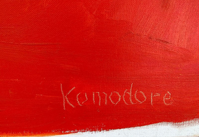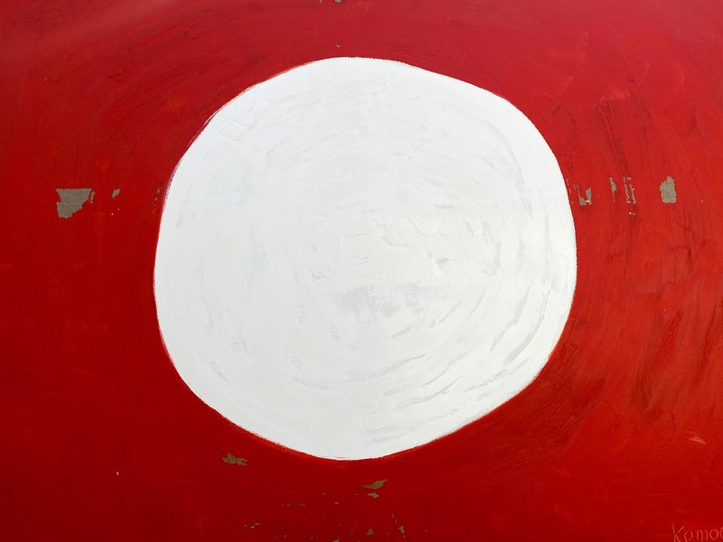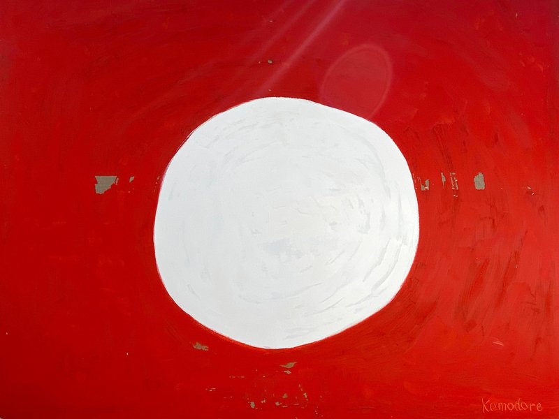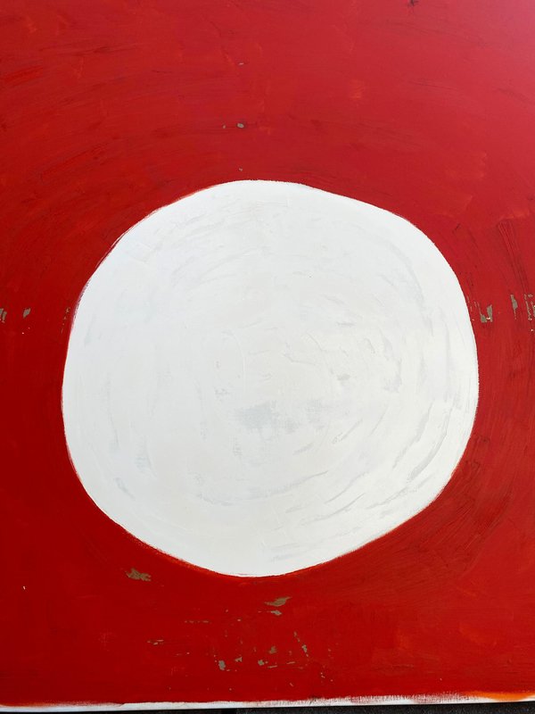 Pyra Sun, Abstract Geometric Composition with Red Background, 2005, Oil Painting