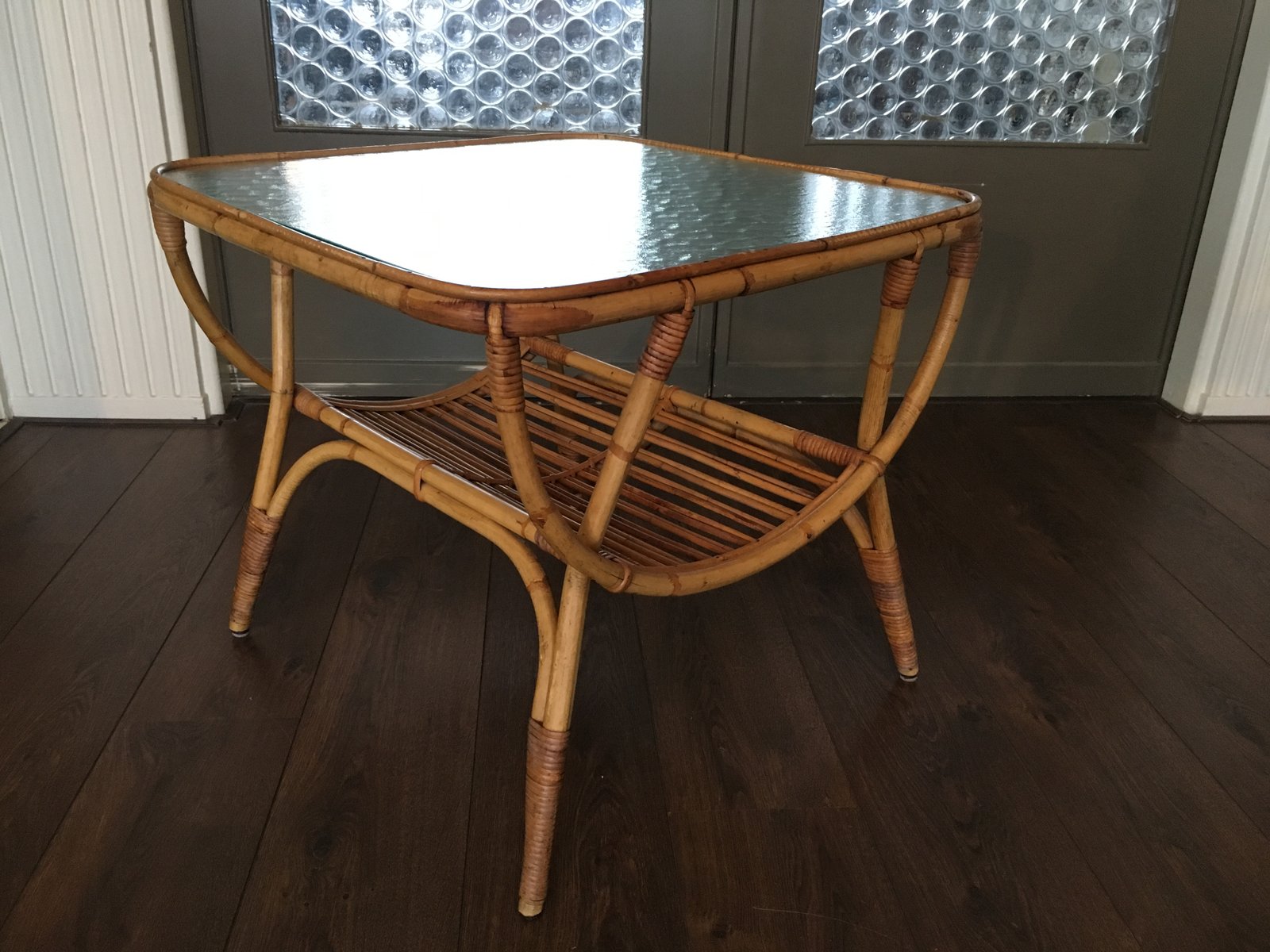 Rattan Side Table by Dirk van Sliedrecht for Rohé Noordwolde, 1950s