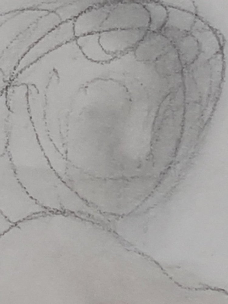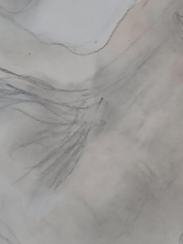 This artwork showcases a figure drawn with fluid, swirling lines, capturing the essence of movement and rest simultaneously. Martin employs soft, muted tones of beige and grey, subtly accentuating the contours and shadows on the figure’s form. The subject reclines with an intriguing twist to the body, suggesting a moment of introspection or contemplation. The minimalistic approach, with few deliberate lines, masterfully conveys emotion and grace, allowing viewers to focus on the interplay between light and shadow, line and space. The use of negative space enhances the composition, drawing attention to the delicate balance achieved within the piece. Unique in its execution, the artwork exemplifies a harmonious blend of simplicity and expression, inviting the audience to explore the nuances of human form and emotion.