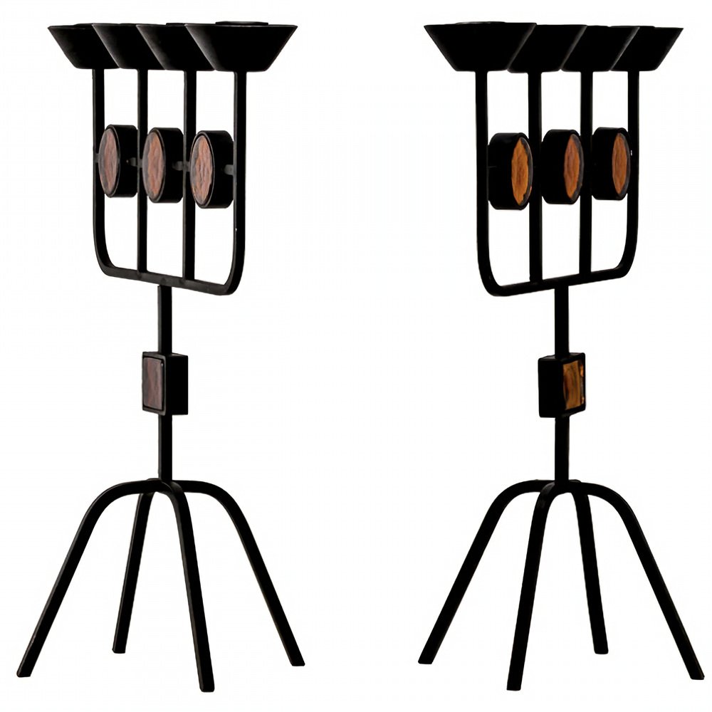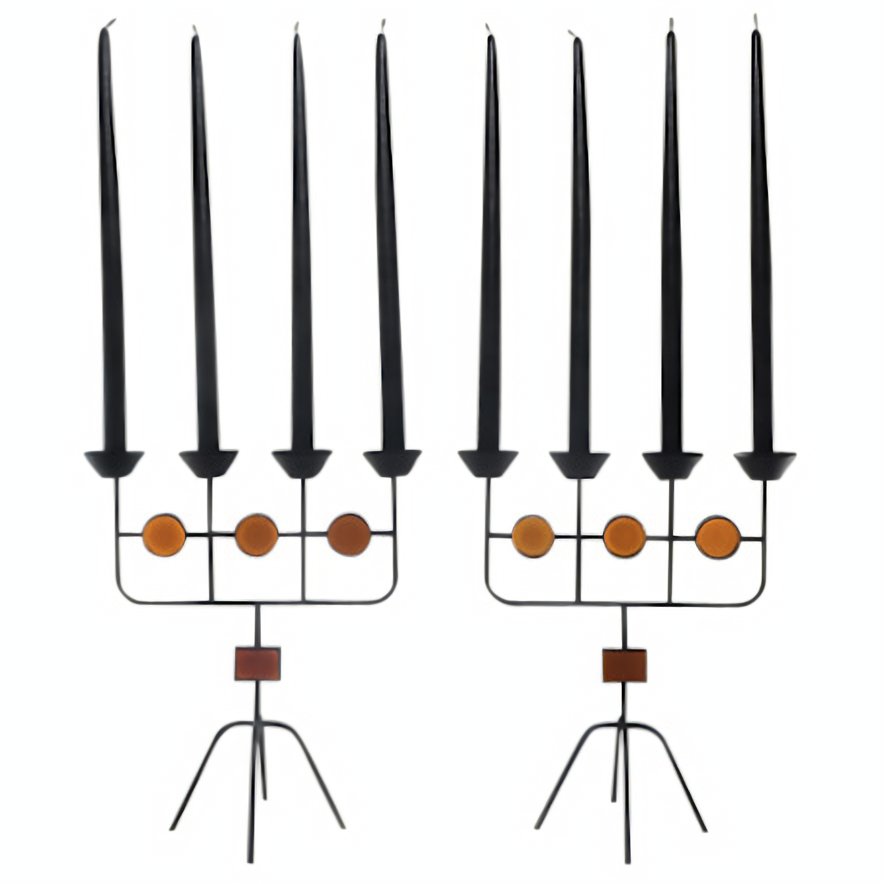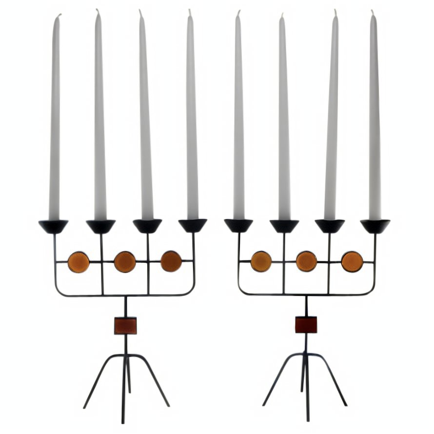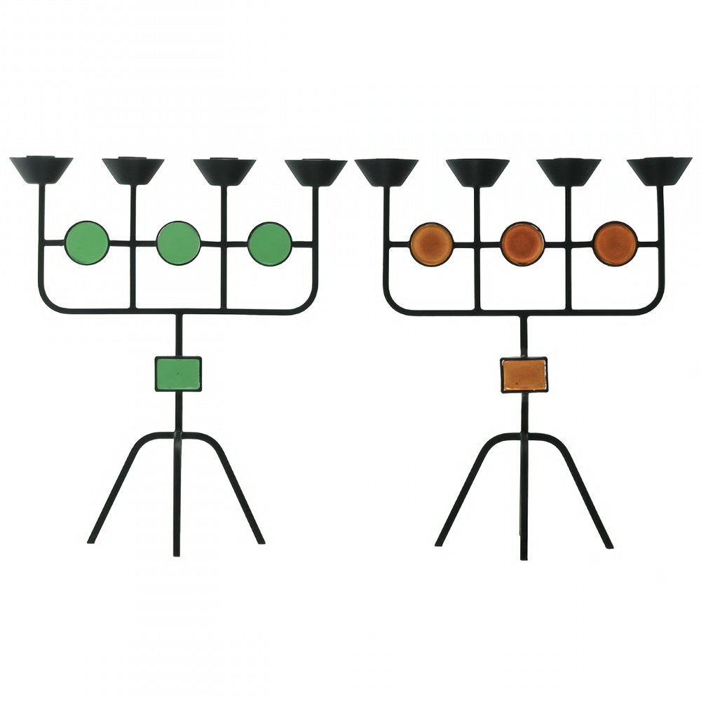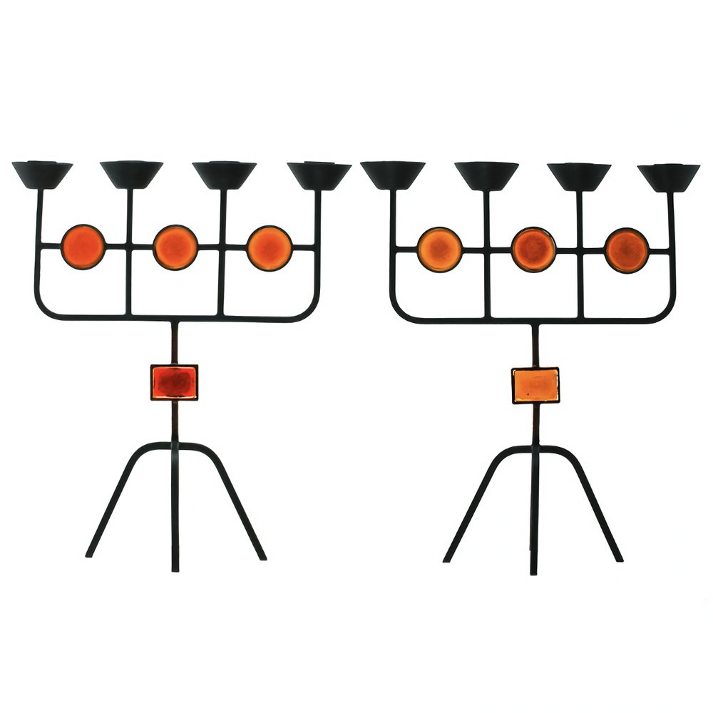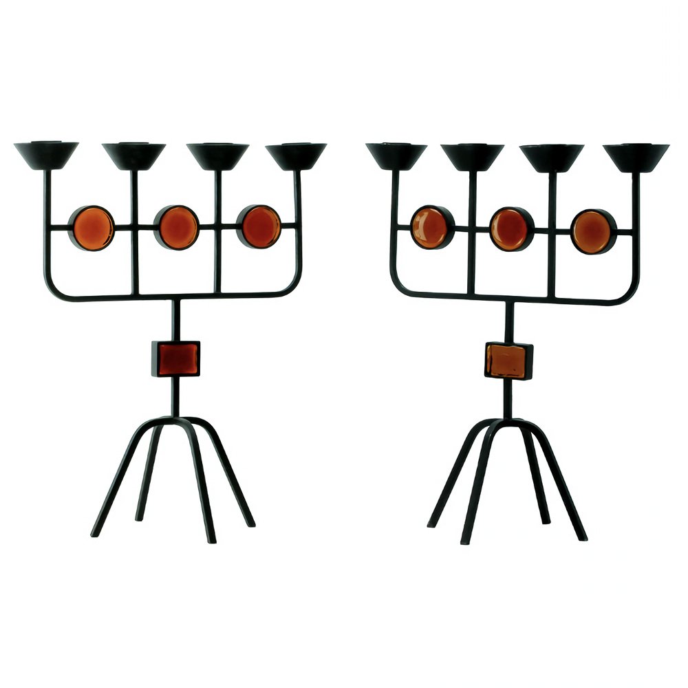 Red Glass and Wrought Iron Candelabras by Gunnar Ander for Ystad Metall, 1950s, Set of 2