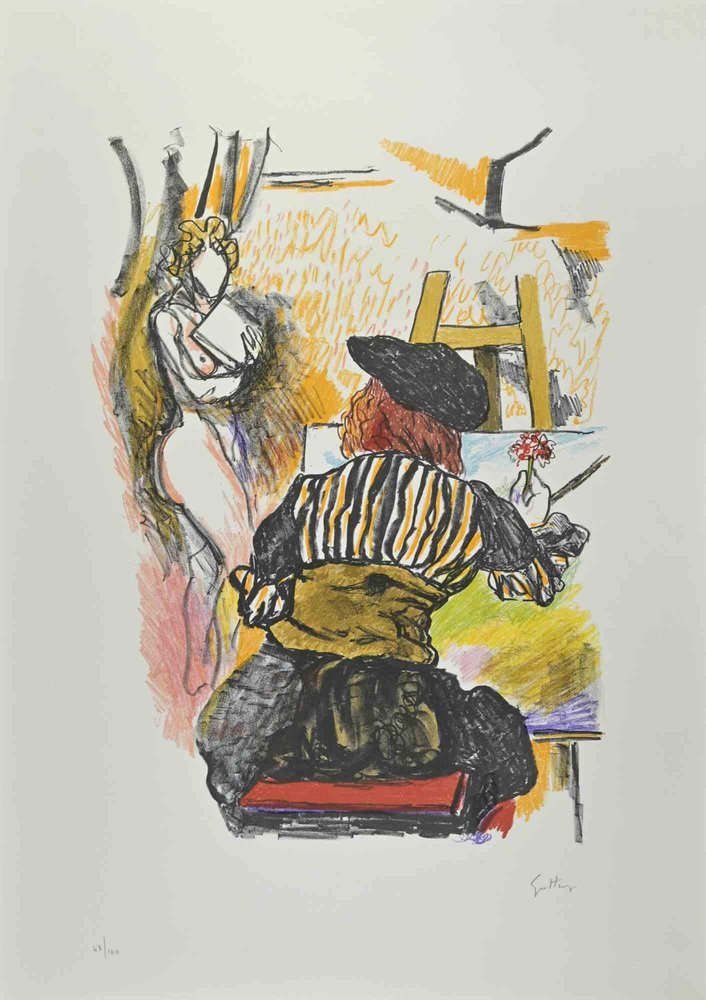 Renato Guttuso, Homage to Jan Vermeer, Lithograph, 1980s