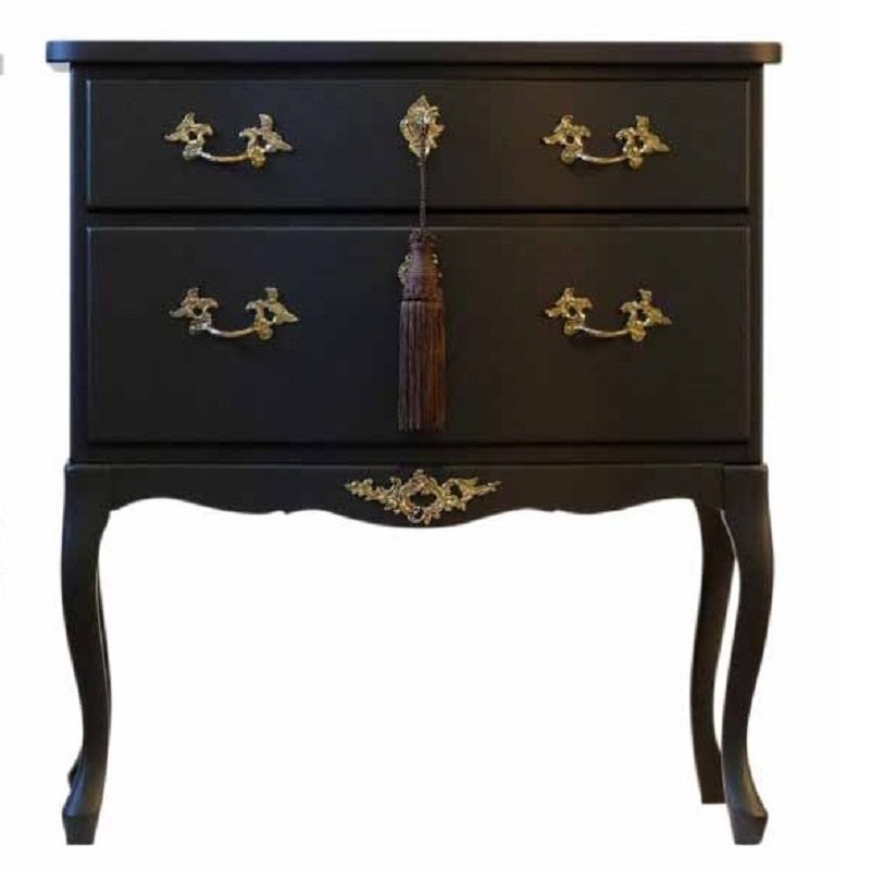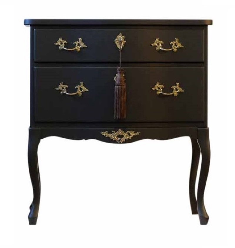 Rococo Style Chest with 2 Drawers and Modern Flat Black Finish