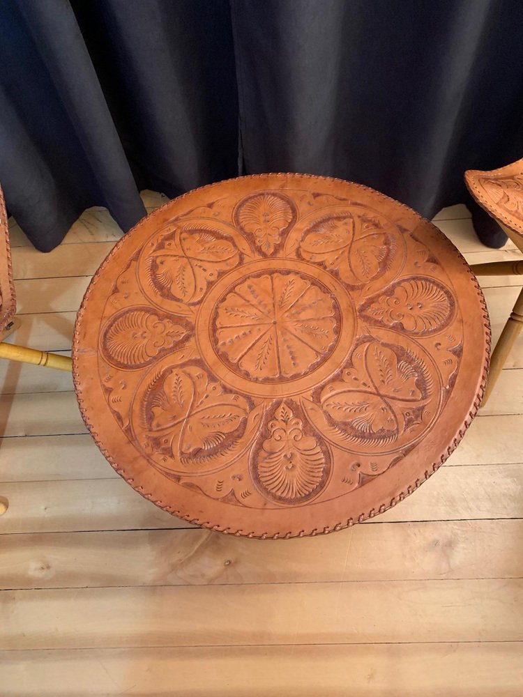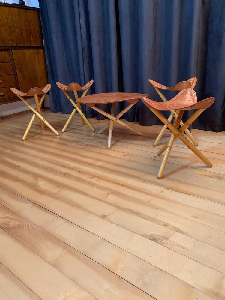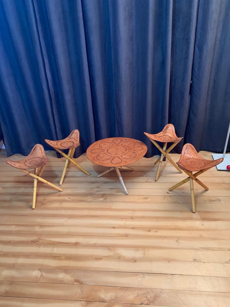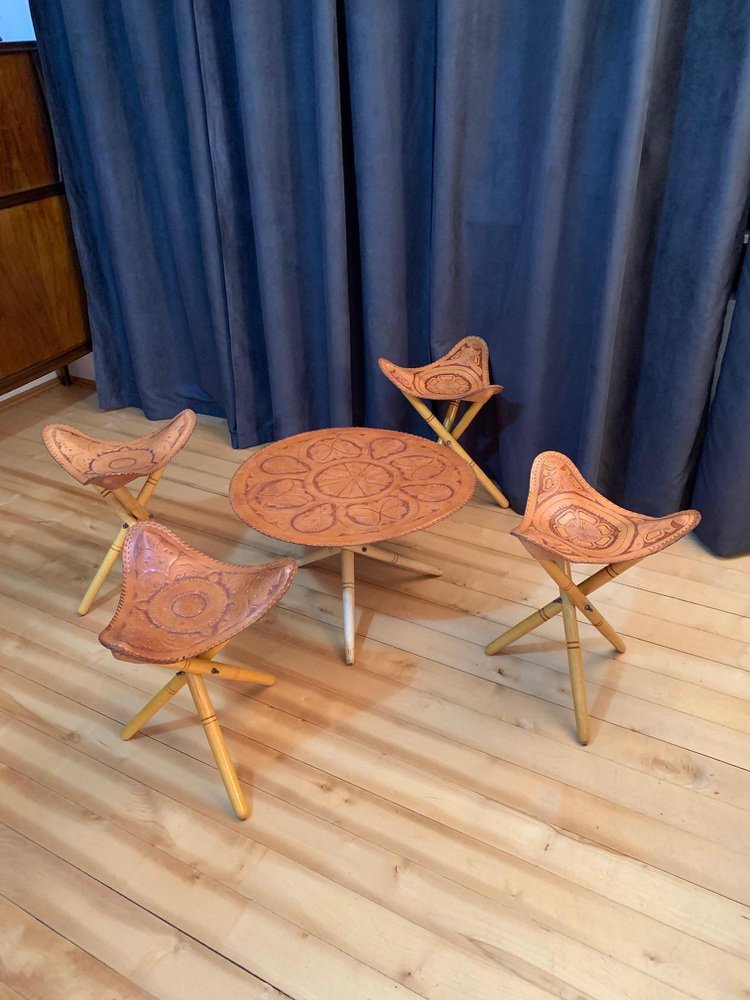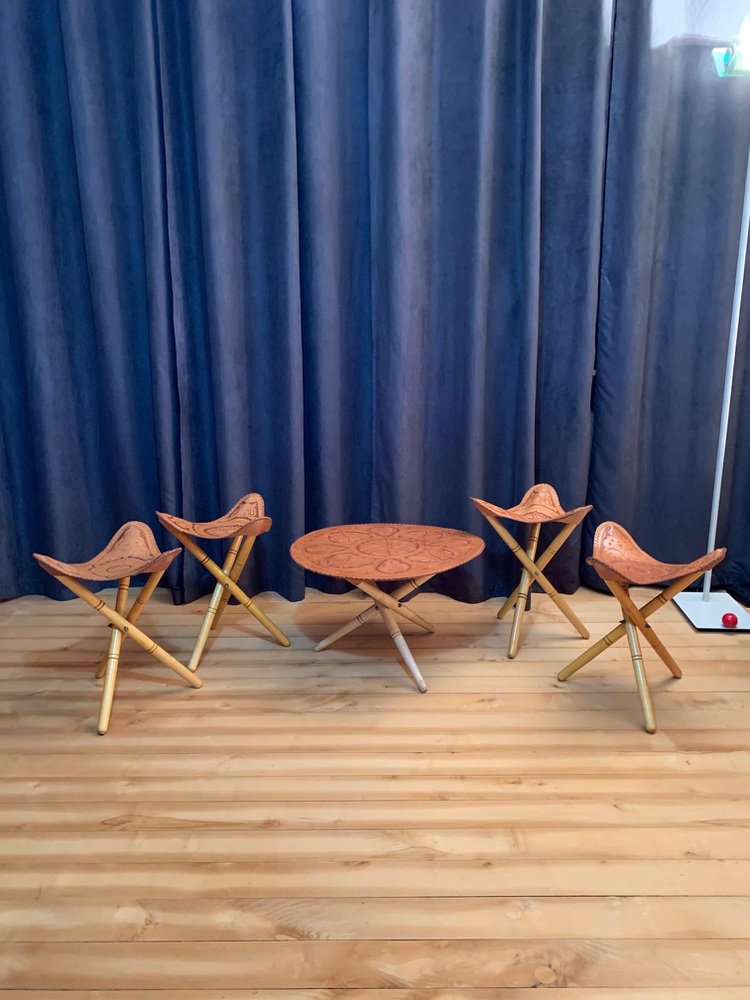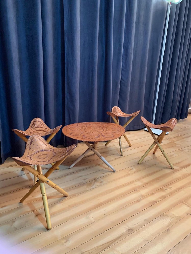Safari Stools & Table Set, 1970s, Set of 5