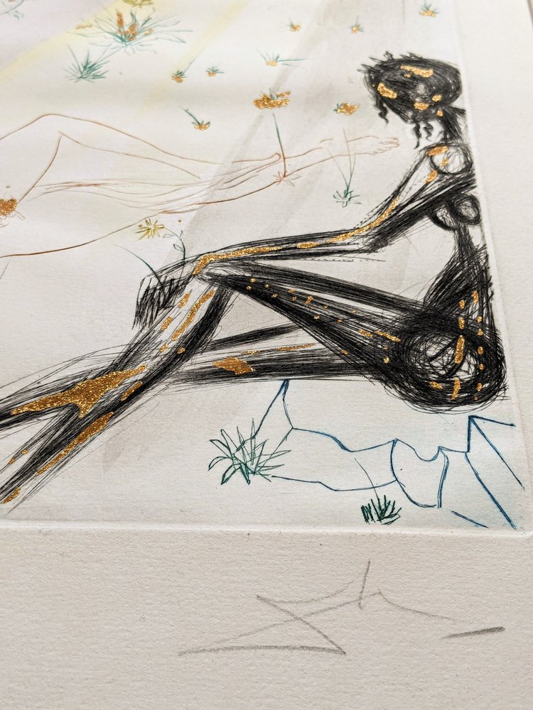 Salvador Dali, Black Girl of Jerusalem / Song of Songs, Hand-Signed Etching with Gold, 1971