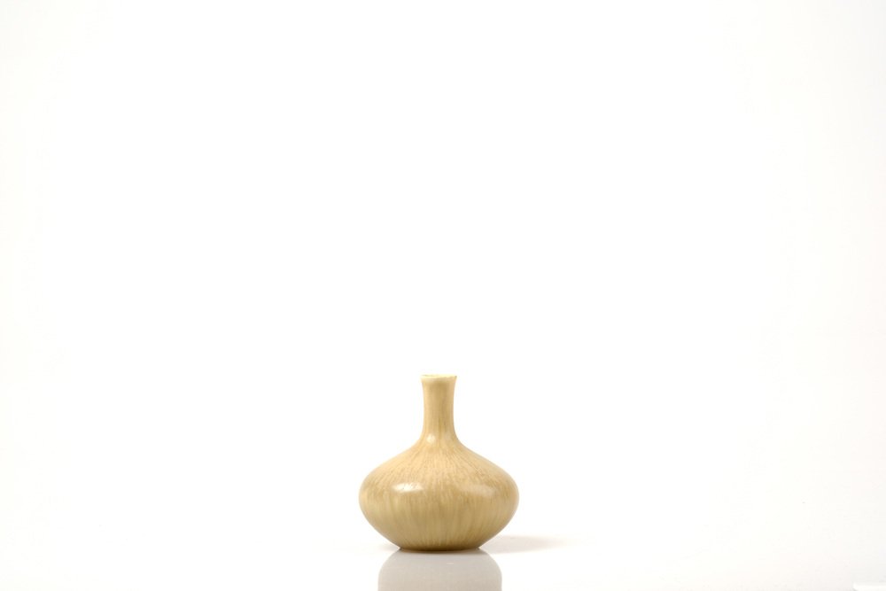 Born in 1920 in Mariestad, Sweden, Stålhane began working at Rörstrand in 1939 as a decorative painter, assisting Danish-Finnish ceramic artist, designer, and sculptor Gunnar Nylund (1904-1997). During this time, Stålhane decorated various ceramic pieces, most notably Nylund’s Flambé range (1939s), quickly establishing himself as a talented ceramic artist. Inspired by the desire for new products during the postwar economic boom, Stålhane went from being a talented decorator to an exceptional ceramic artist.
